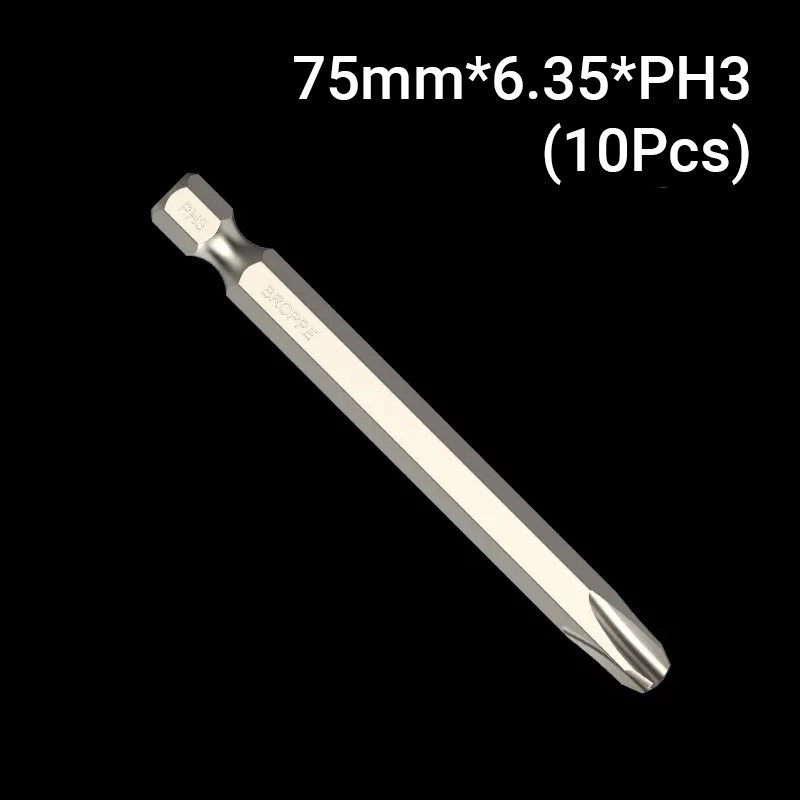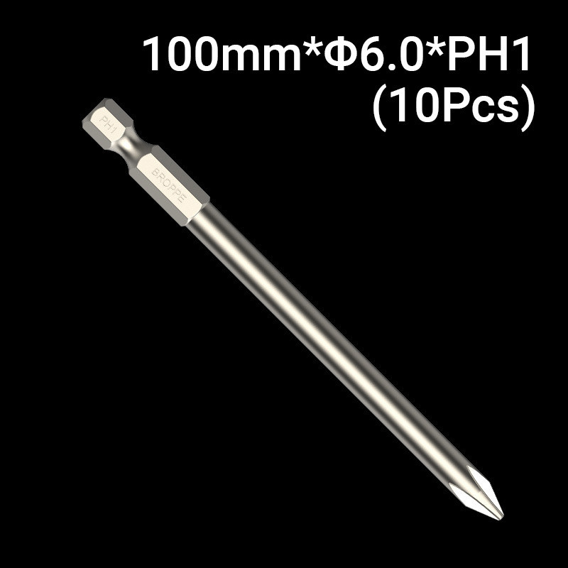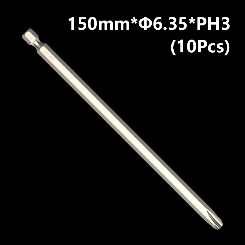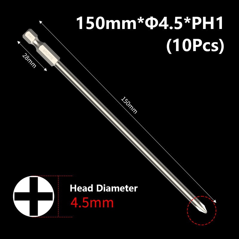 10Pcs Phillips Cross Screwdriver Bit 50/75/100/150mm Length PH1/PH2, Magnetic S2 Steel 1/4" Hex Shank Cross Ended Impact Screw Driver Bits PH00/PH0