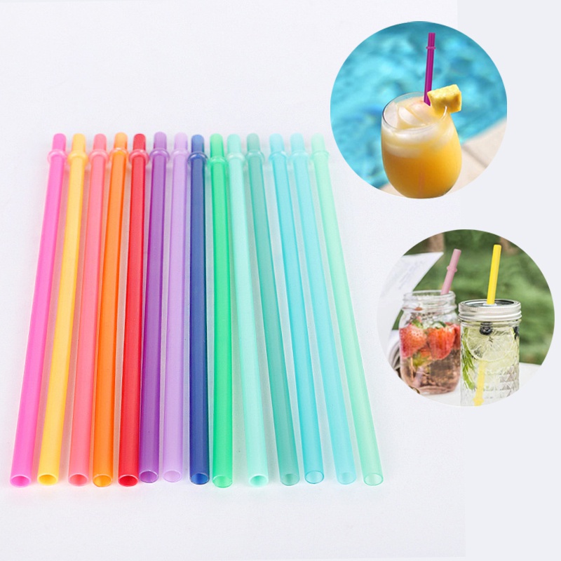 10Pcs Reusable Plastic Straws BPA-Free Random Mixed Colored Replacement Hard PP Plastic Drink Straw 24cm Long