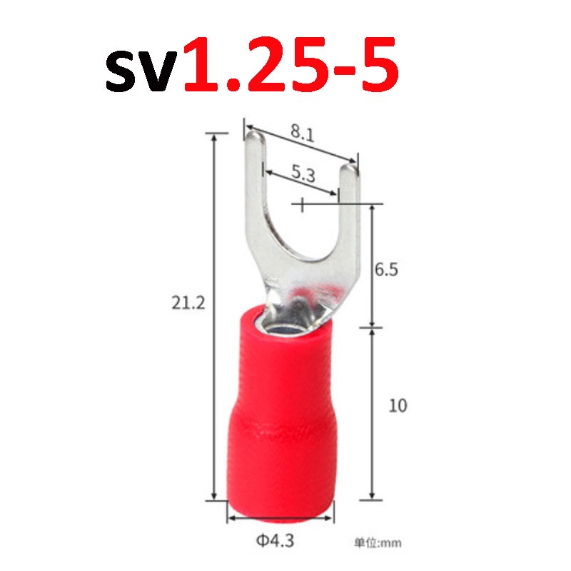10Pcs SV Type Wire Spring Terminal SV1.25 SV2 Fork U Y PVC Insulate Ferrules Block Spade Cold Press Cable End Crimp Connector