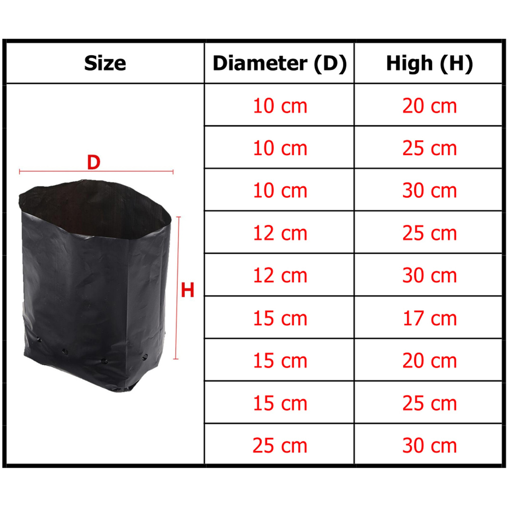 10Pcs Thick UV Polybag Fertigasi Polibag Hitam Nursery Plantation Bag Tahan kuat lama polibeg polybeg
