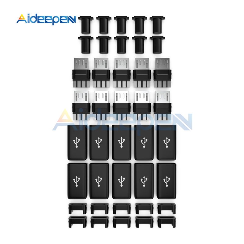 10Pcs/lot Micro USB Cable Male Plug Connector DIY Kit With Covers Case Black DIY Data Cable Accessories Mini Plug Terminals