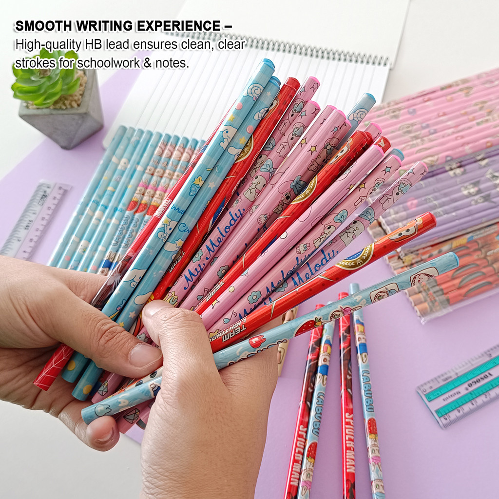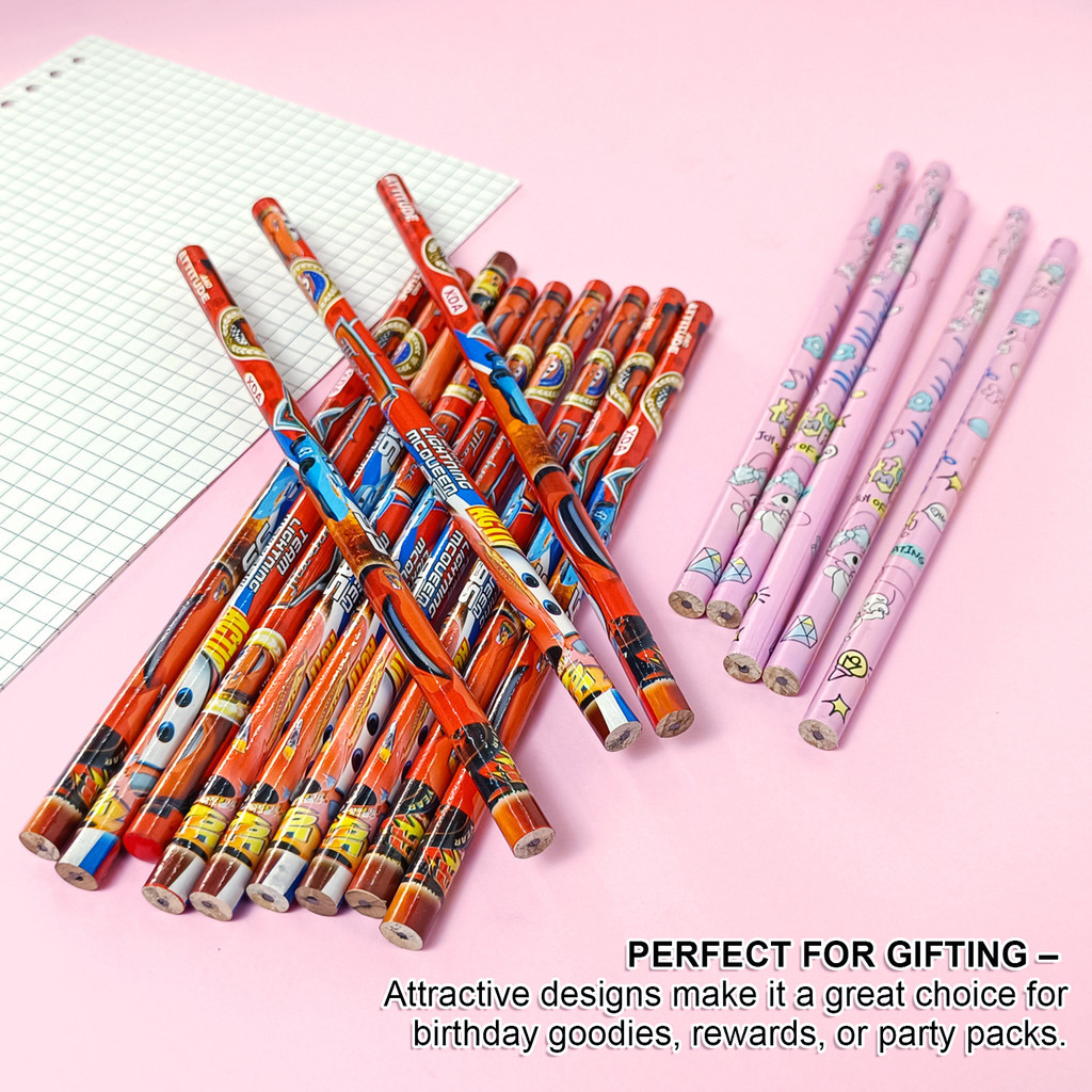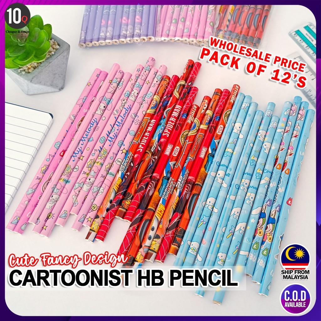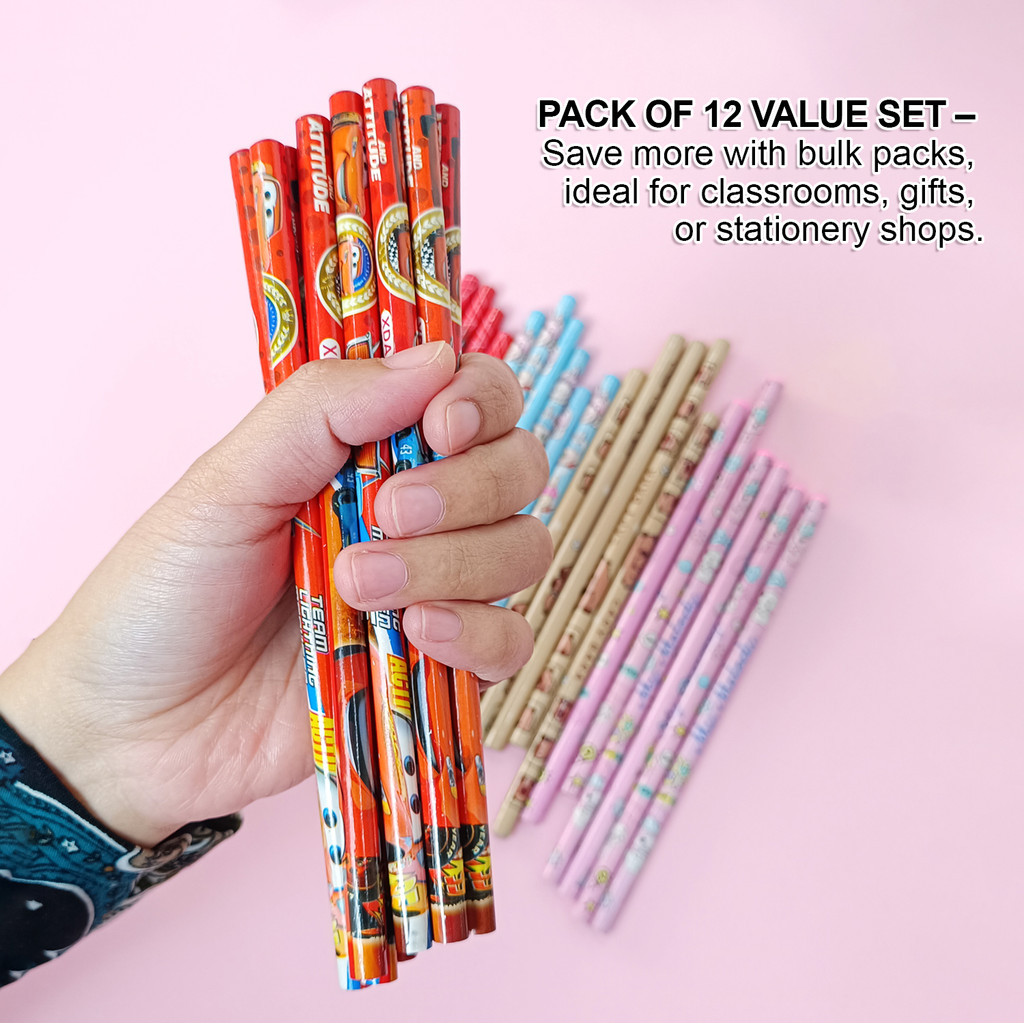 10Q Cartoon HB Pencil Pack of 12 | Cute Fancy Design | Smooth Writing | School & Office Stationery