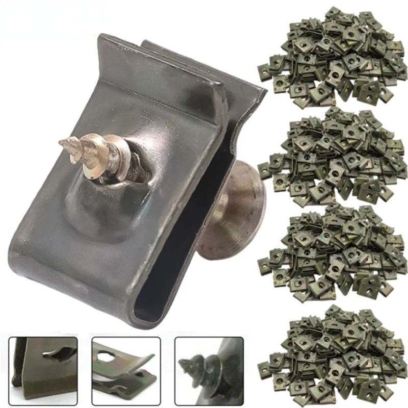 10Sets Metal U-type Clip with Screw for Car Bumper Fender Trim Panel Fasteners Leaf Board Fastener Grommet Screw Clips Gasket