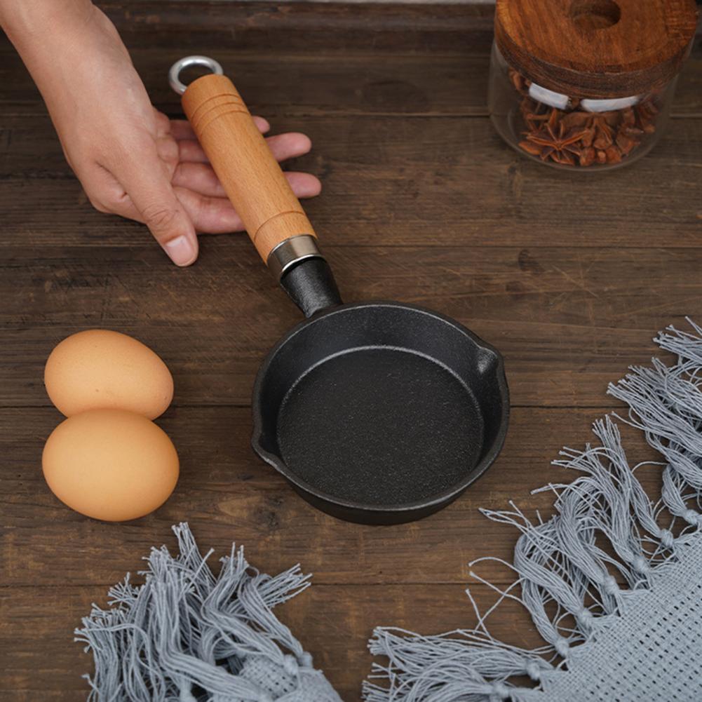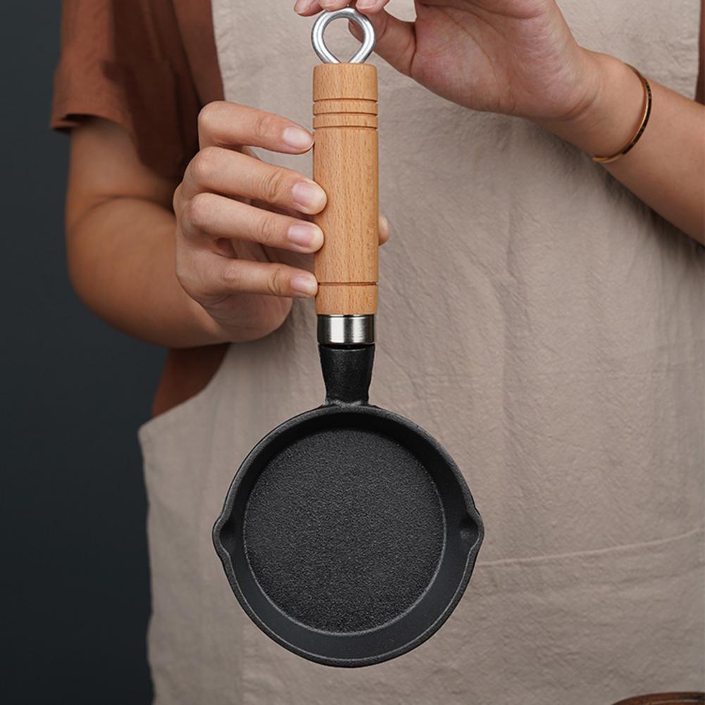 10cm Cast Iron Mini Omelette Pan Hot Frying Pan Breakfast Omelette Pan Non-Stick Omelette Dumpling Pot Acacia-KTWR18017
