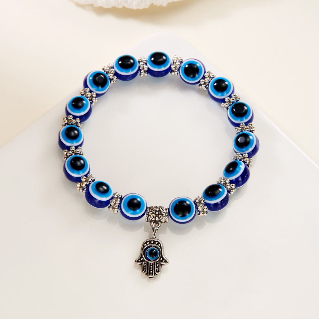 10mm Blessing Evil Eye Bracelet for Women Lucky Blue Devil's Eye Bead Bracelet Friendship Jewelry