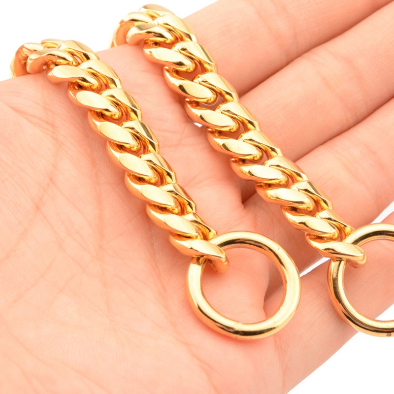 10mm Gold Dog Chain Collar Stainless Steel Necklace Dog Stuff Training Metal Durable P Chain Choker Pet Collars for Pitbulls