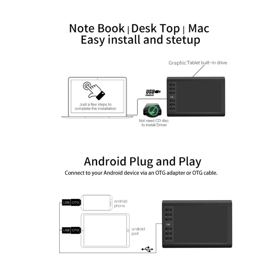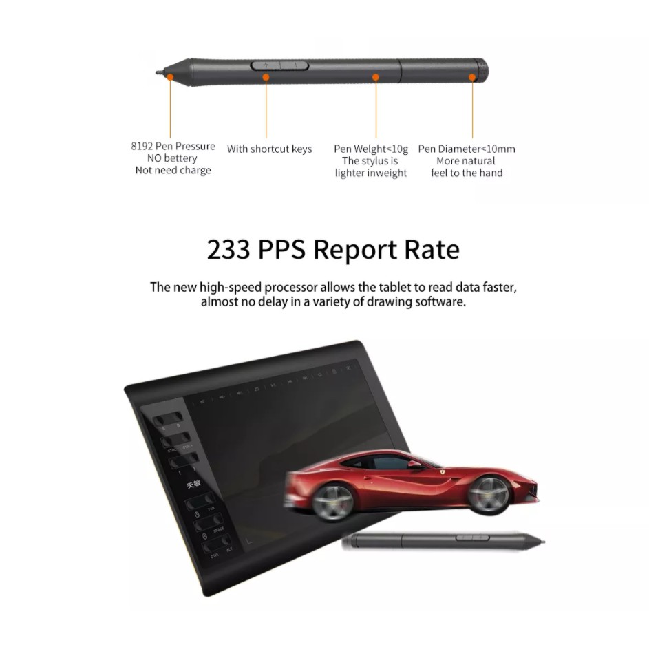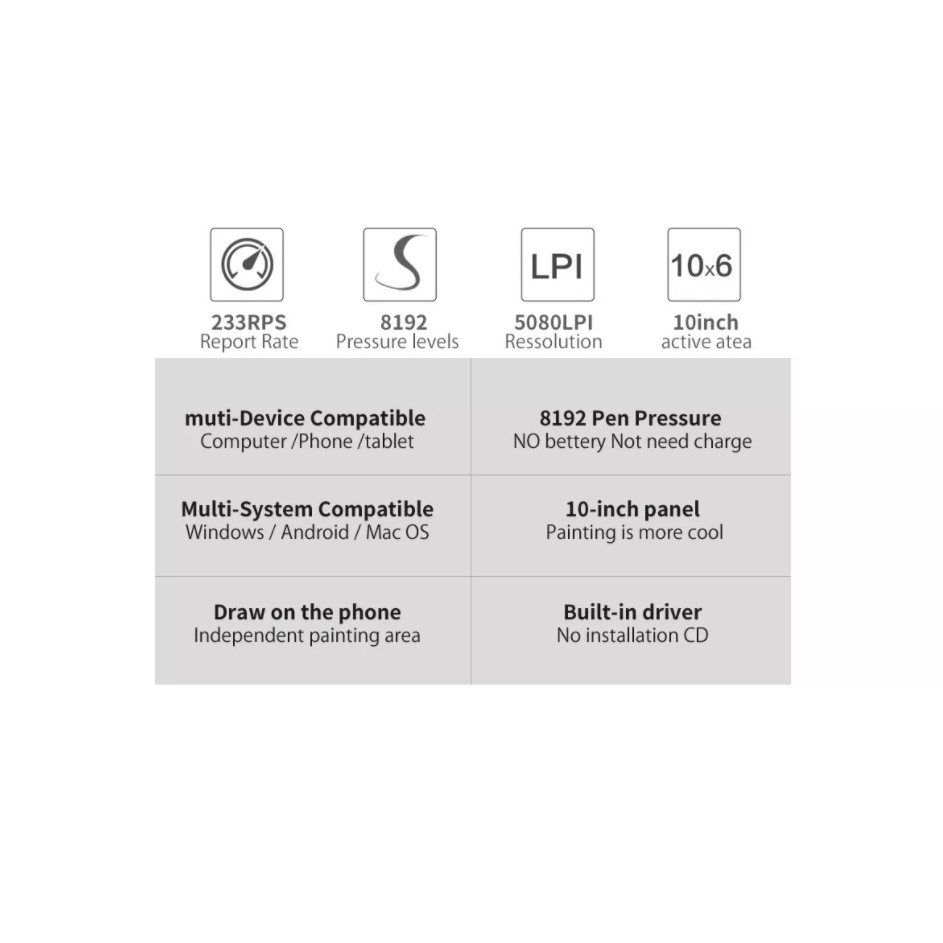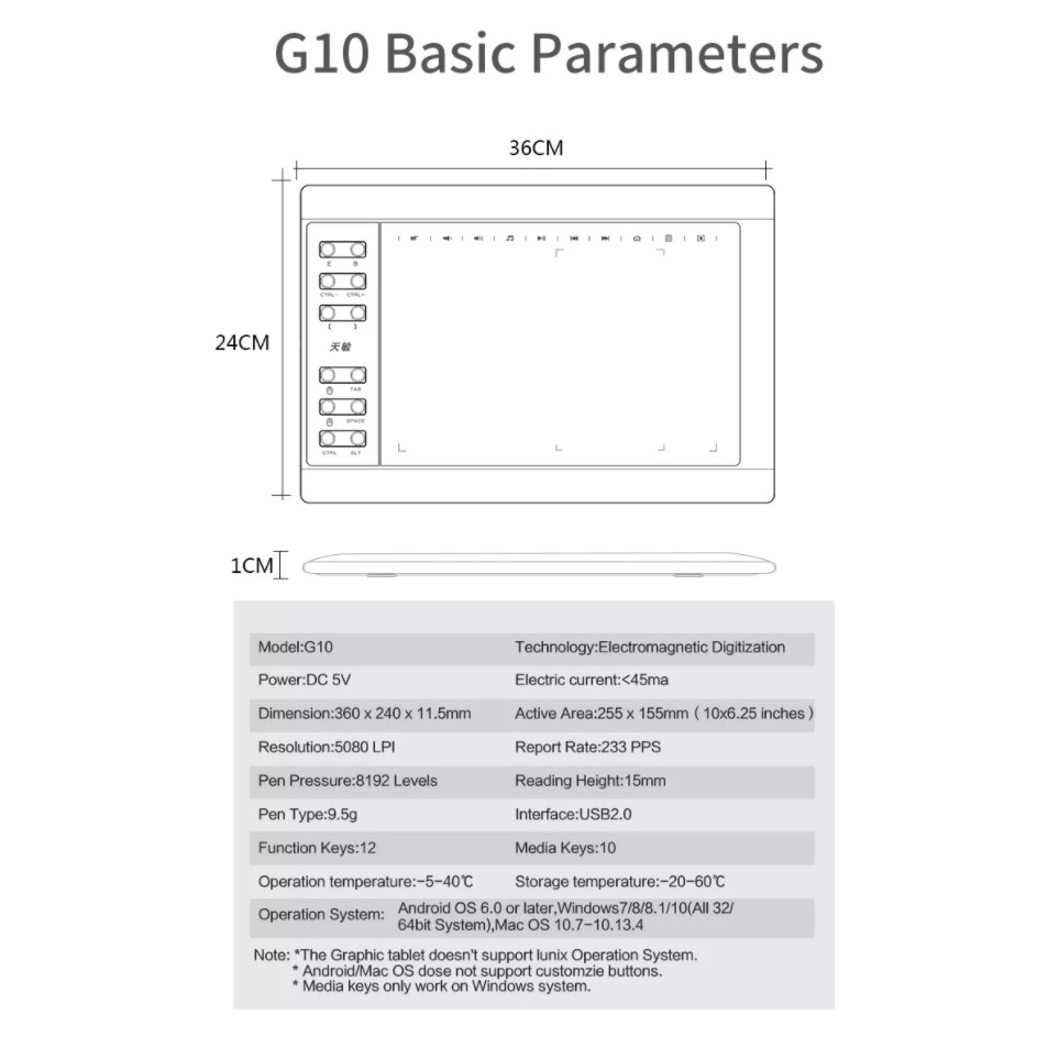 10moons G10 Master Graphic tablets 8192 Levels 10 x 6 inch Graphic Tablet No need charge Pen Pad Support Android