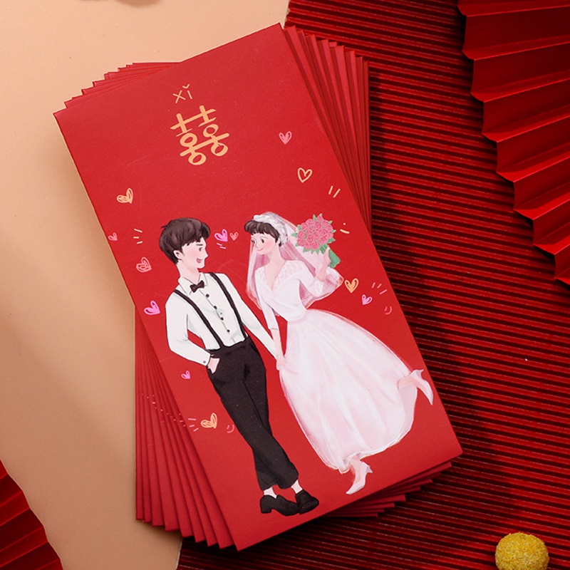 10pc Creative Wedding Red Packet Lucky Money Bag Foldable Marriage Blessing Red Envelope Angpao