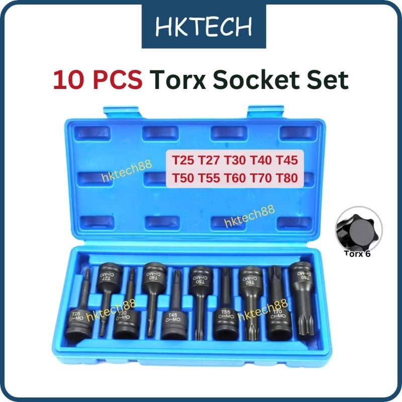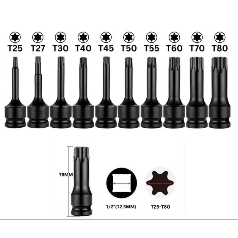 10pcs 1/2 Inch Torx Impact Socket Set T25-T80 CR-MO Set T Type Impact Driver Tool Box Torx Bit