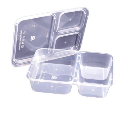 10pcs - 3 Compartment Microwavable Container with lid CB Ware Chunbe TC1200