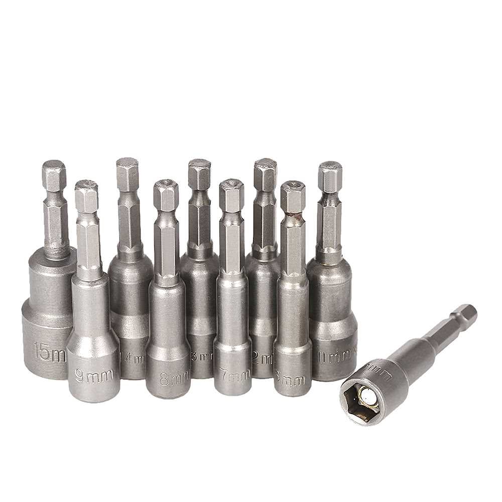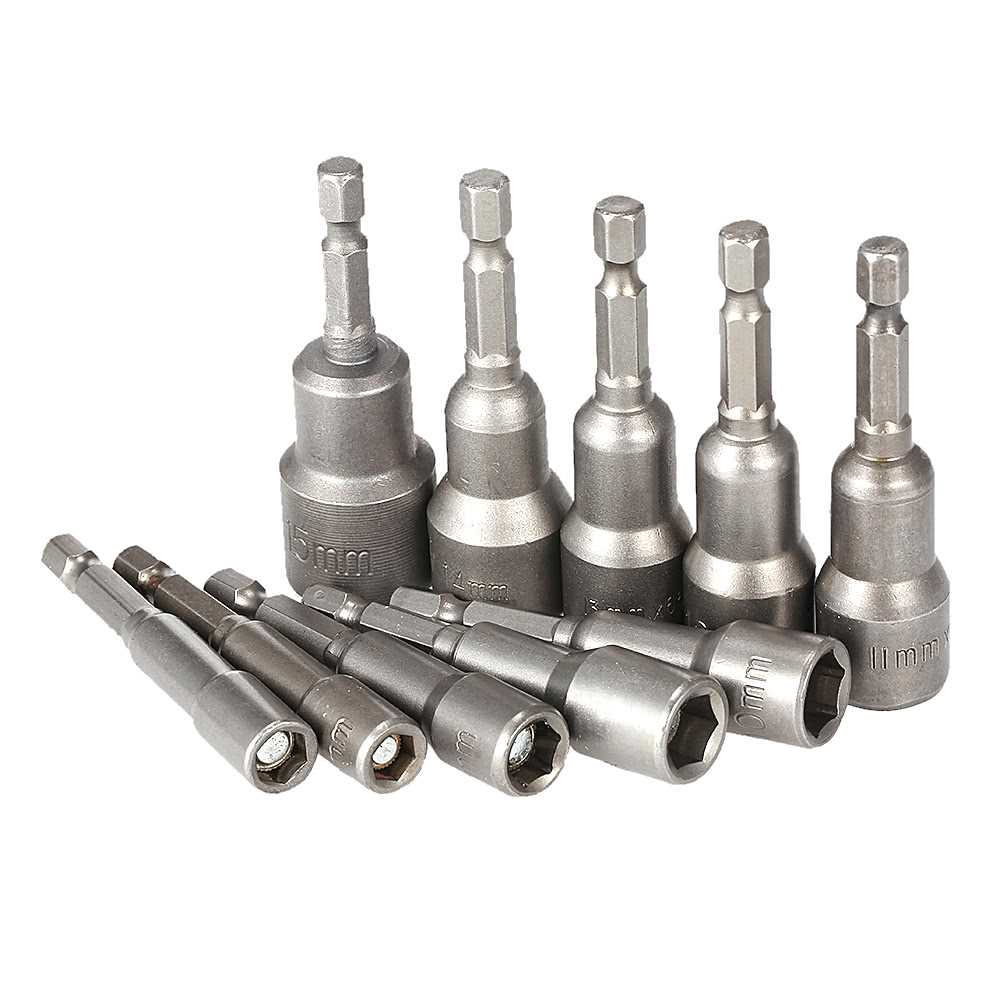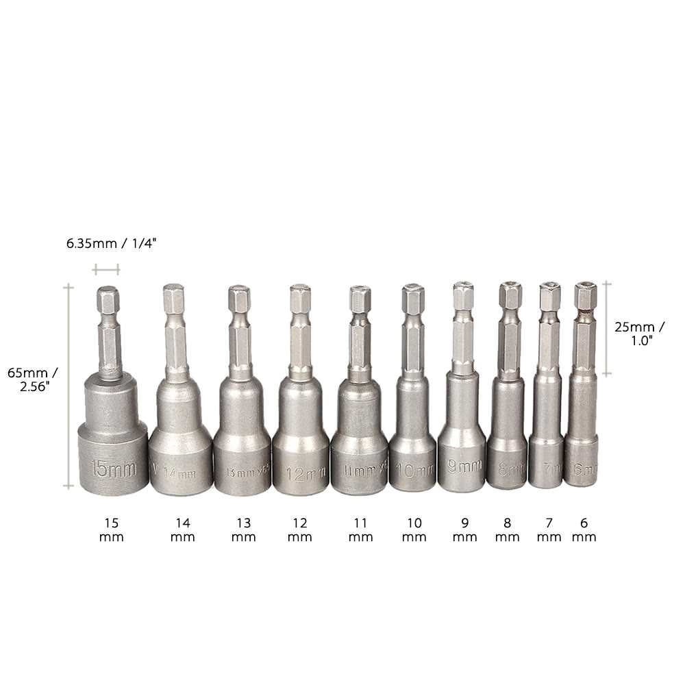 10pcs 6-15mm Pneumatic Strong Power Magnetic Nut Driver Drill Bits Set 65mm 1/4