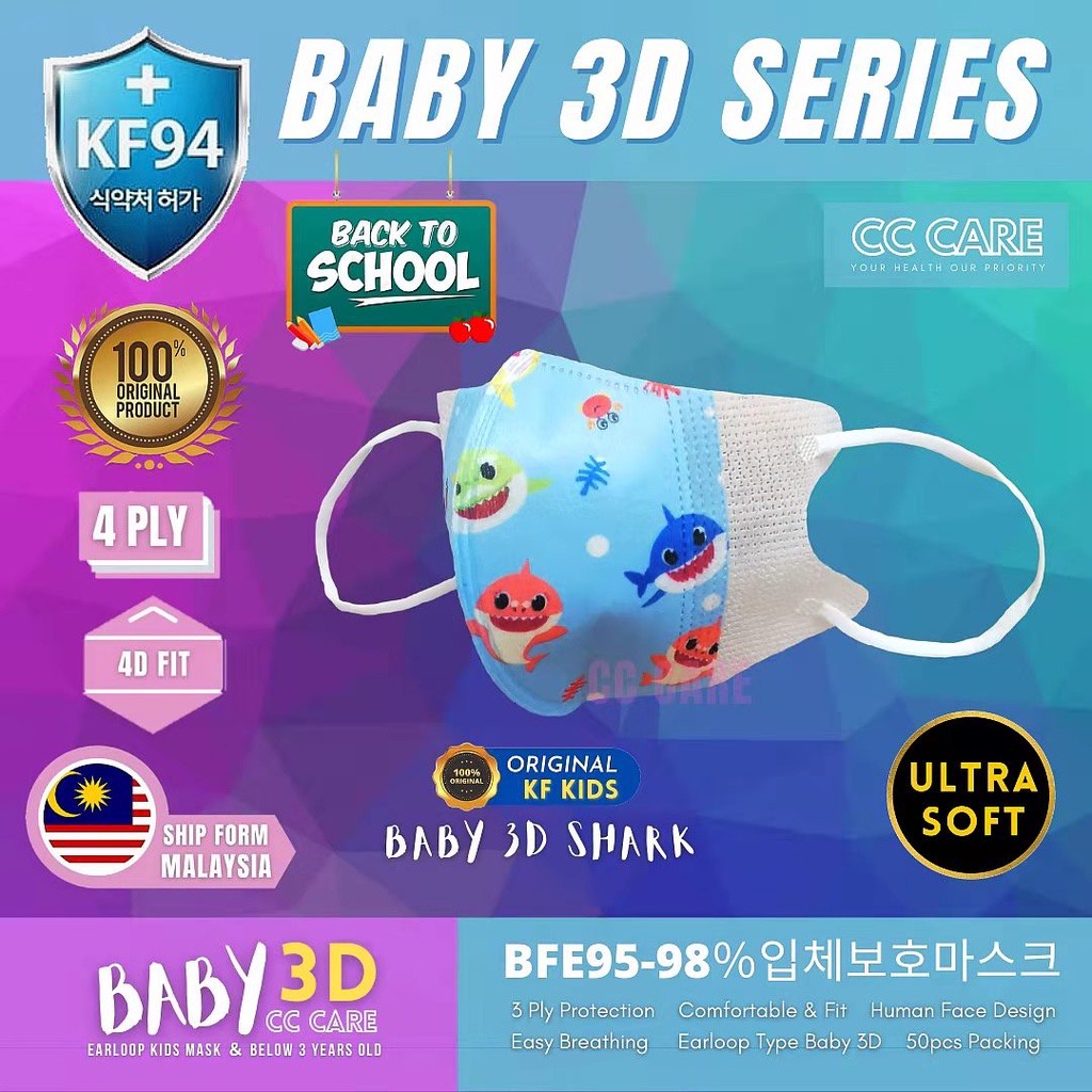 10pcs Kids Baby Face Mask Premium 3D Earloop White Face Mask Baby Cartoon Mask Child KF94 Headloop KN95 5Ply Face Mask