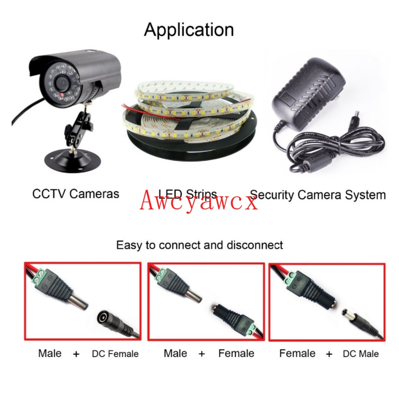 10pcs Male Female DC Power adapter Plug CCTV LED LCD 5V 6V 9V 12V supply Terminal Connectors 5.5mm * 2.1mm 2.5mm