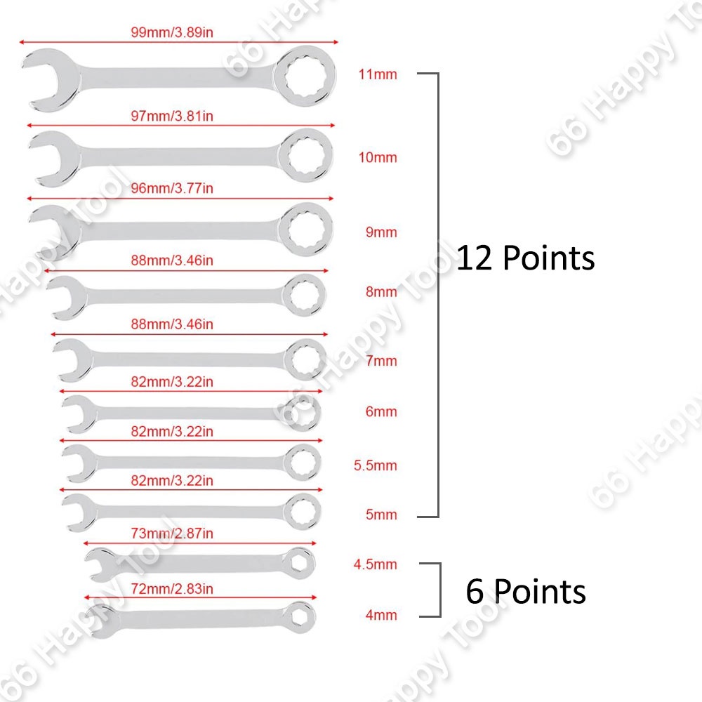 10pcs Metric Mini Combination Wrench Set Professional Spanner Set 4-11mm Small Size Hand Tool