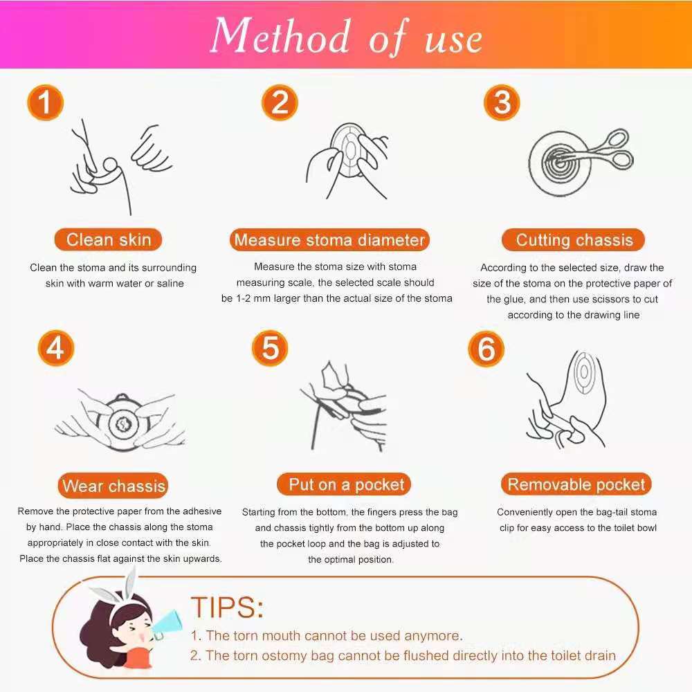 10pcs One-piece System Colostomy Stoma Bag Pouch Ileostomy Ostomy Bag Stoma Cut Size 20mm-60mm Transparent Cover