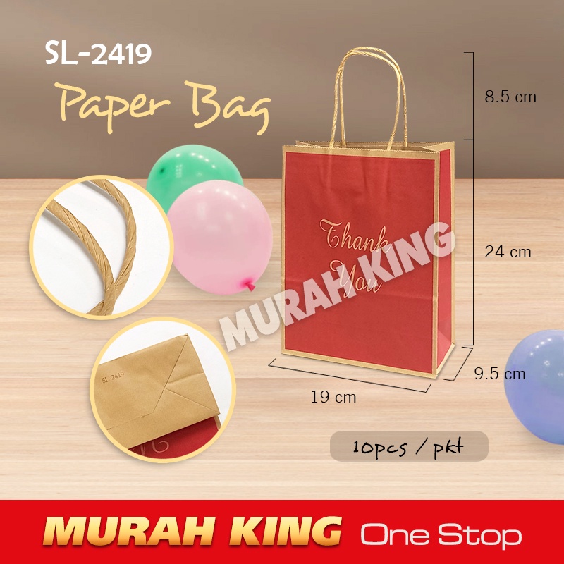 10pcs PAPER BAG Thank You Printed XL , L Size/ GIFT BAG BAG MURAH BAG JAMUAN GOODIES BAG WEDDING GIFT Kraft paper bag