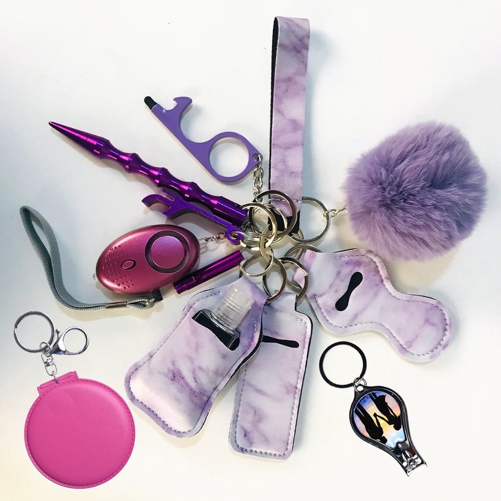 10pcs Personal Alarm Safety Defense Keychain,Safety Keychain Accessories,Self-Defense Keychain Set for Women and Kids(Purple)
