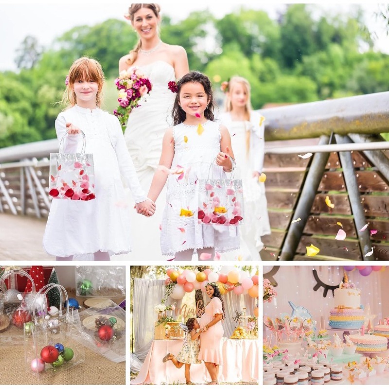 10pcs Reusable Clear PVC Plastic Gift Lunch Bags with Handles Transparent Gift Wrap Tote Bags for Valentine's Day Boutique Bridesmaid Wedding Baby Shower Birthday Party Favor