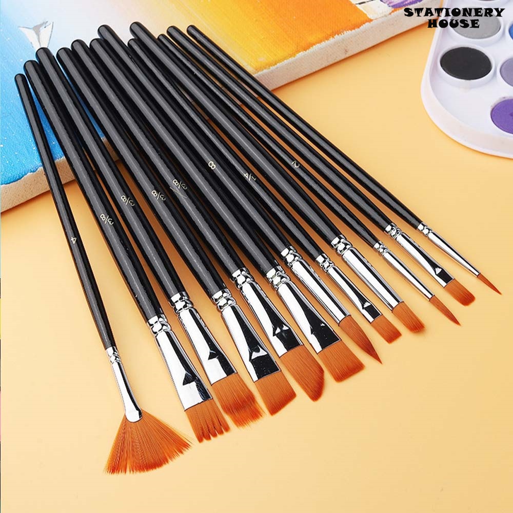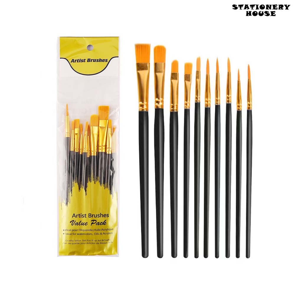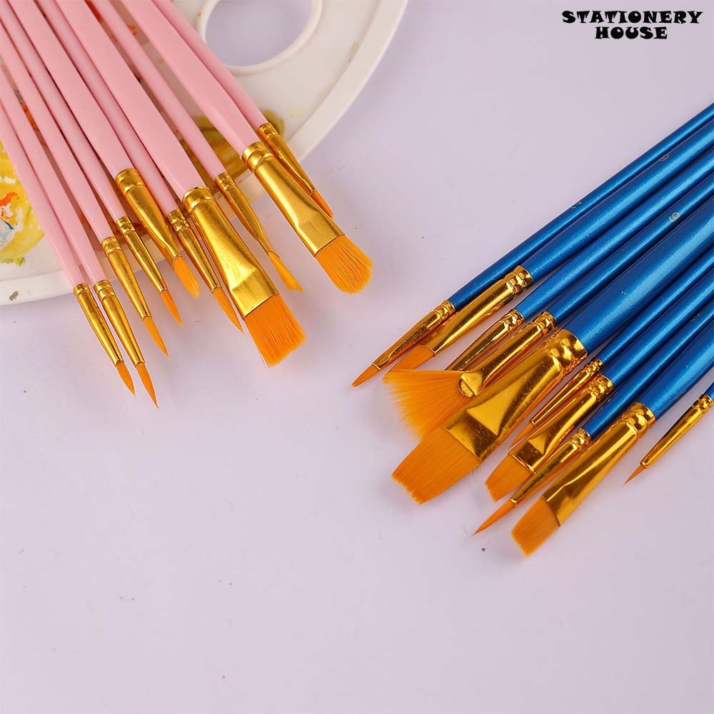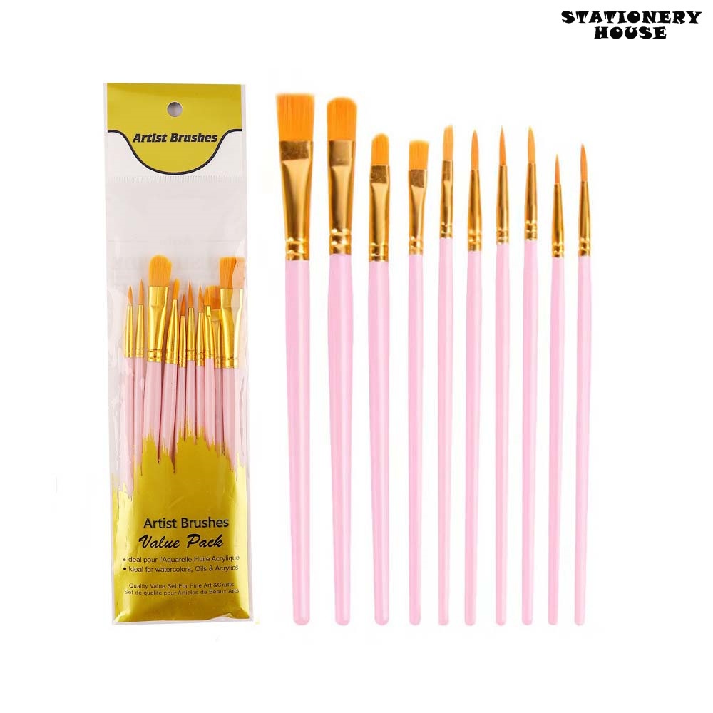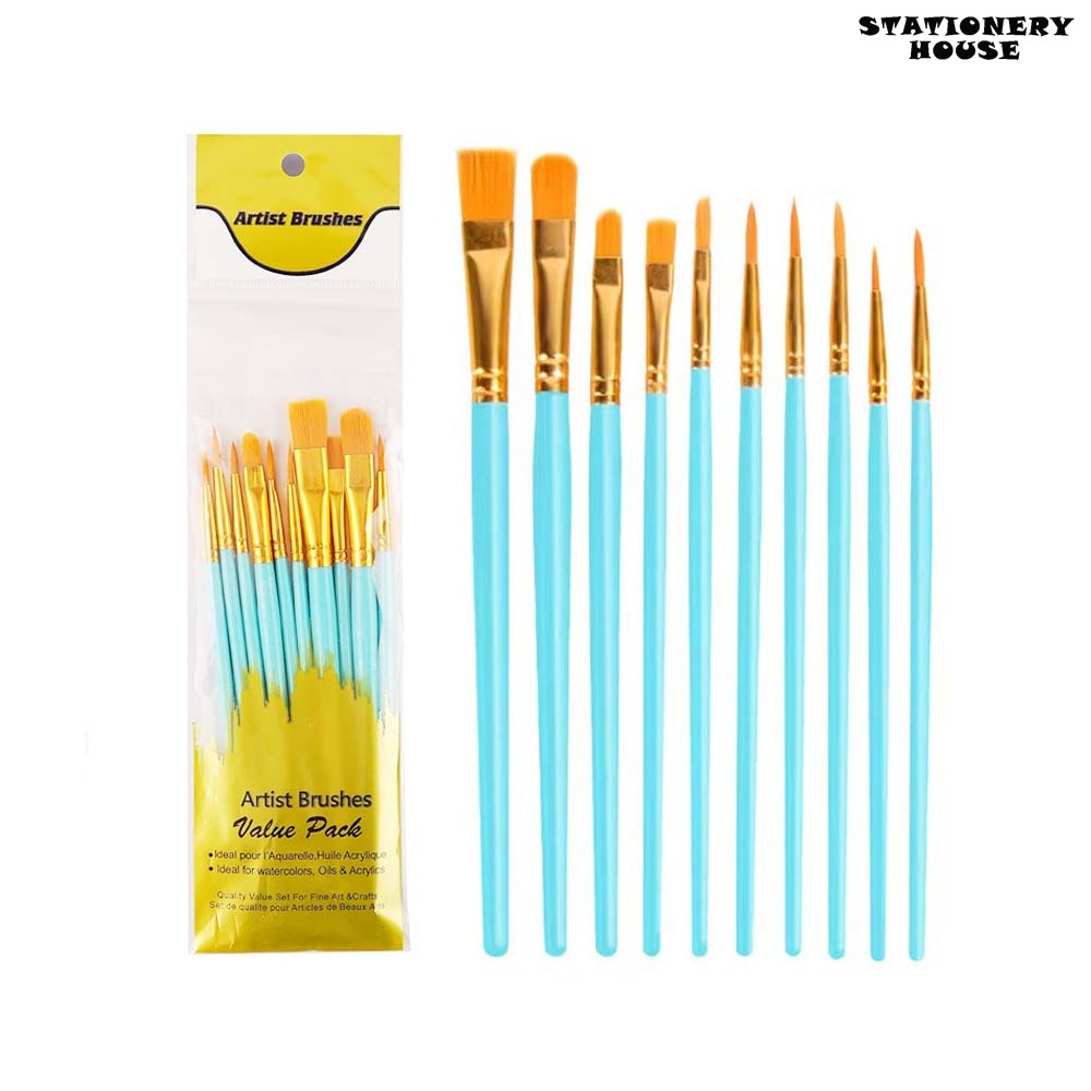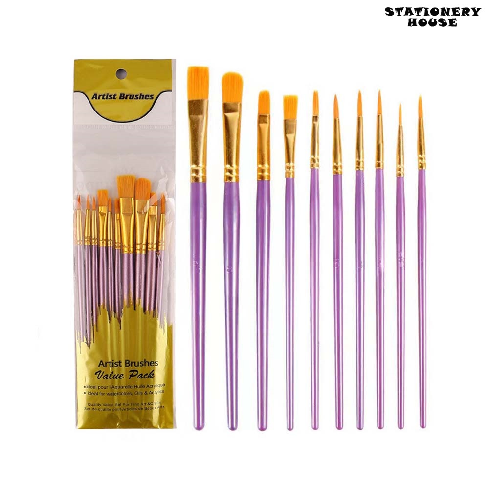 10pcs Set Berus Cat Guas Cat Air Bentuk Berbeza Petua Runcing Bulat Berus Lukisan Rambut Nilon Perlengkapan Seni Pen