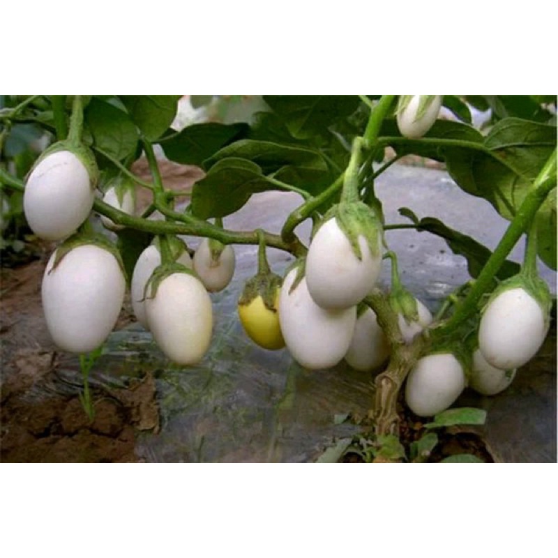 10pcs Terung Bulat Putih hibrid tanam dalam pasu, bajakan pd hari ke-20,