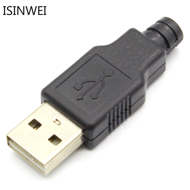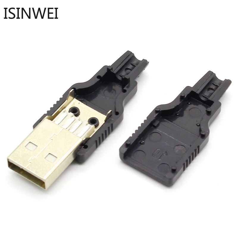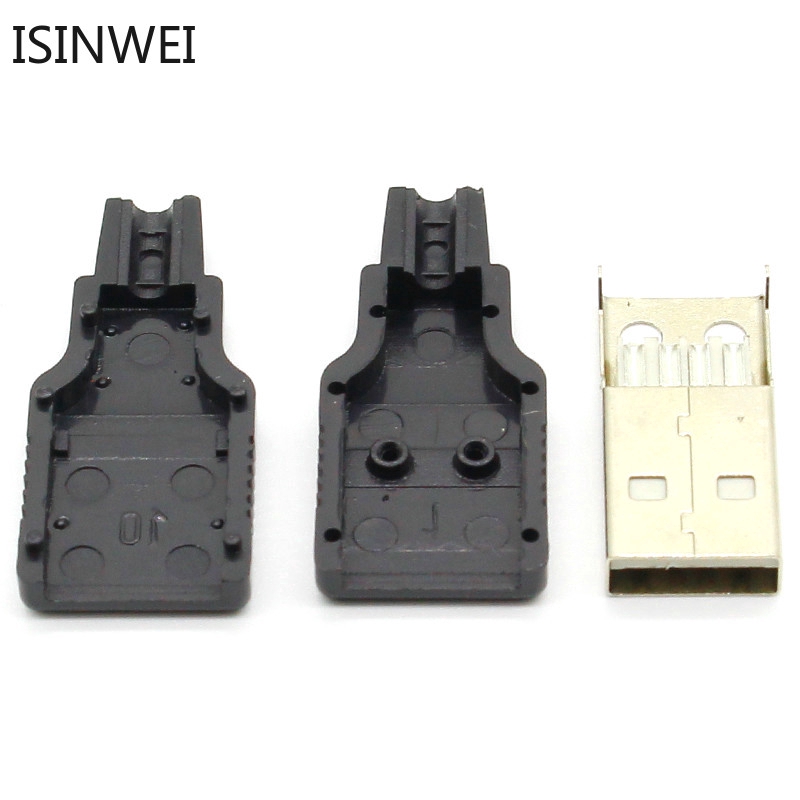 10pcs Type A Male USB 4 Pin Plug Socket Connector With Black Plastic Cover Three piece