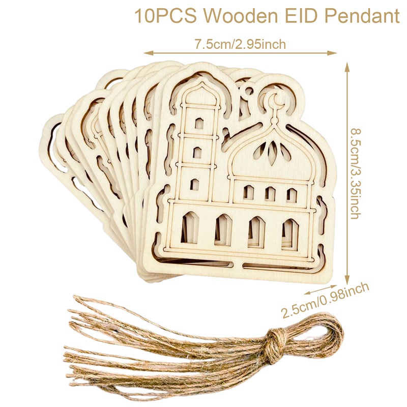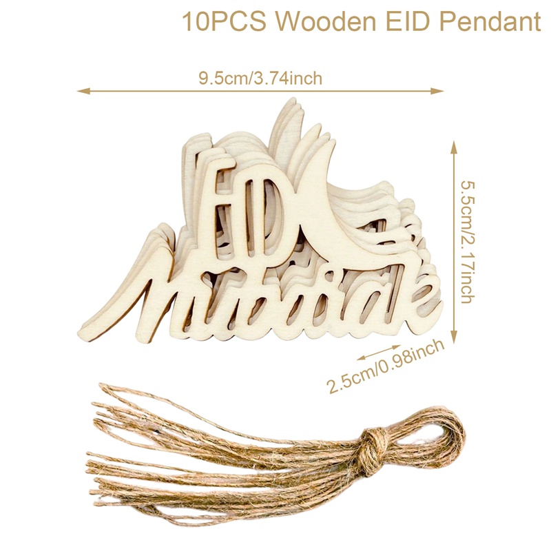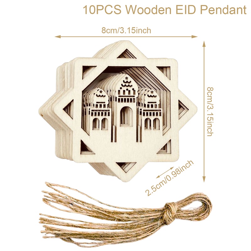 10pcs Wooden Eid Mubarak Pendants Ramadan Ornament DIY Islamic Muslim Festival Party Decoration for Home Moon Eid Al-Fitr Decor