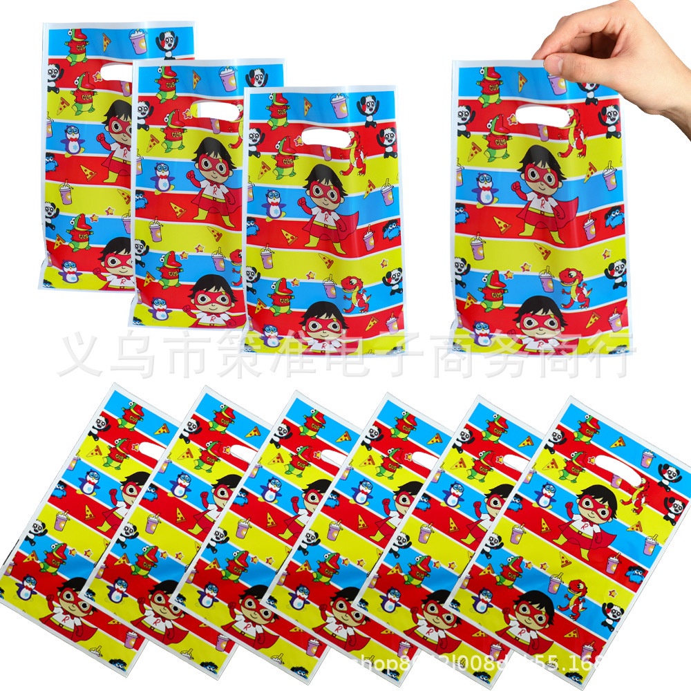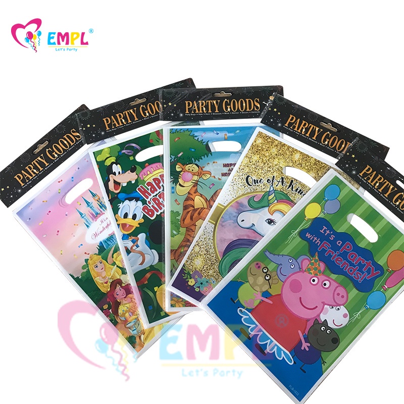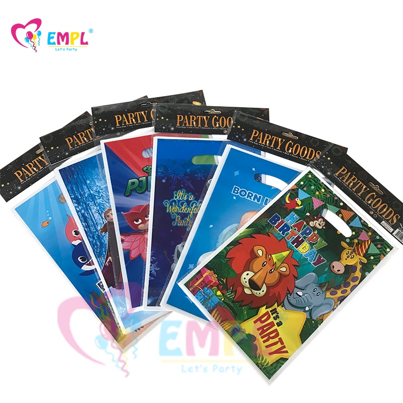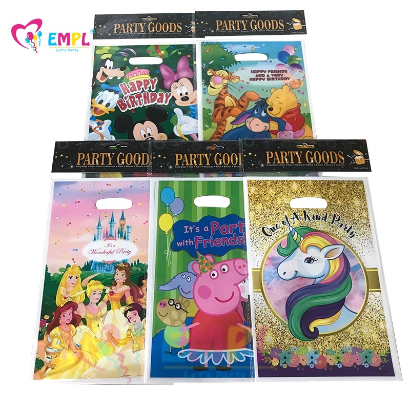 10pcs/lot Cartoon Gift Bag Party Candy Bag Children Birthday Gift Cartoon Themed Plastic Goodies Loot Bag Frozen/Mickey Mouse/Princess/Peppa Pig/Baby Shark/baby Boss