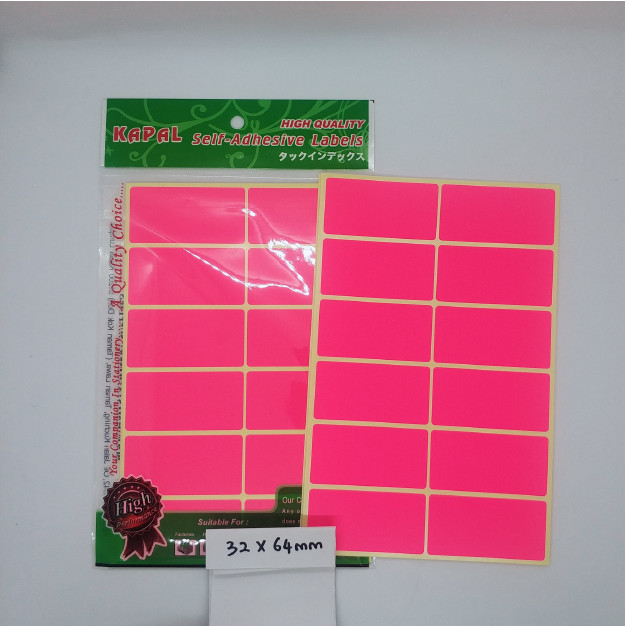 10sheets Rectangle Self Adhesive Label Sticker Florescent/Pelekat Segi Empat