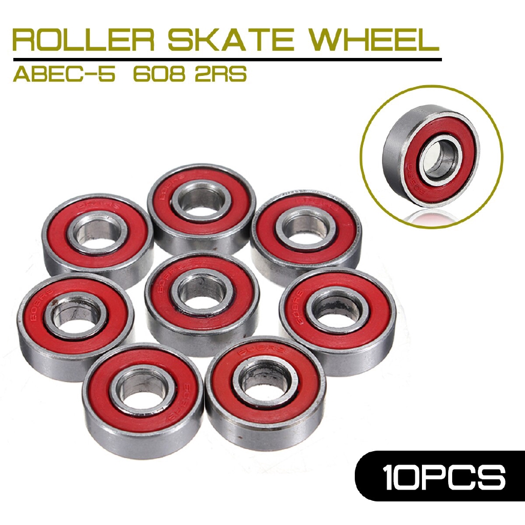 10x ABEC-5 608 2RS Inline Roller Skate Wheel Bearing Anti-rust Skateboard Wheel Bearing 2.1 x 2.1 x 0.7cm Shaft Red Sealed