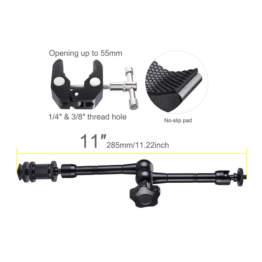 11'' Metal Magic Arm Super Clip Crab Clamp Articulating Holding Arms For Camera Accessory