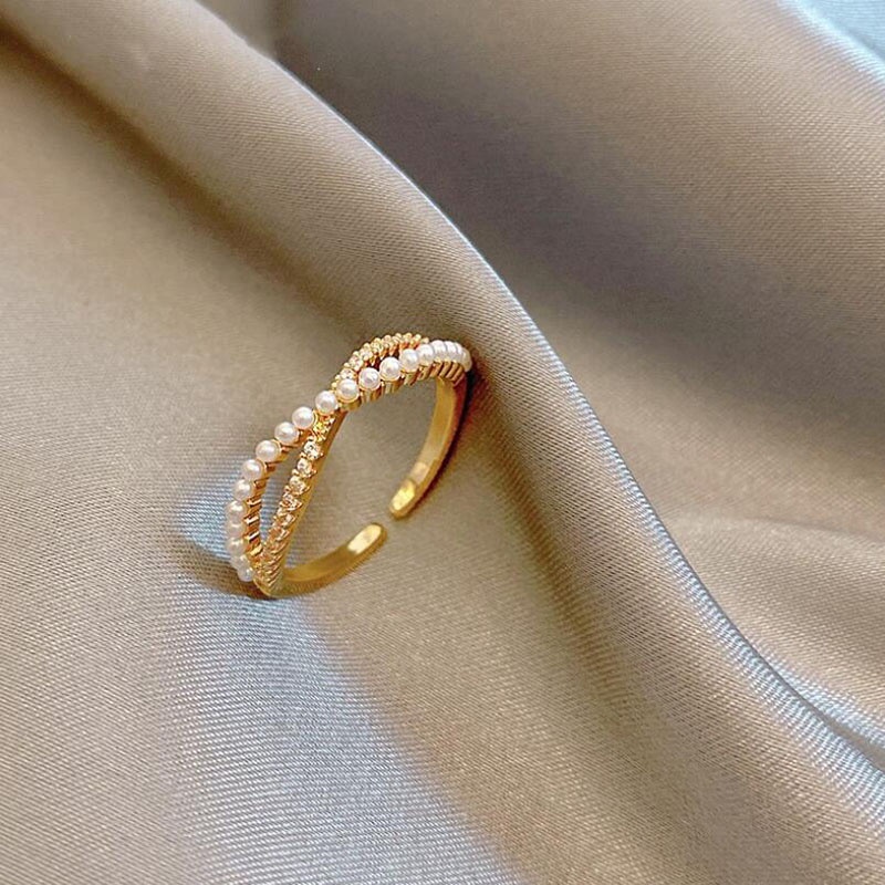 11 Types Simpe Style Gold Titanium Steel Geometric Women Fashion Jewelry Diamond Crystal Ring Cincin Adjustable Size