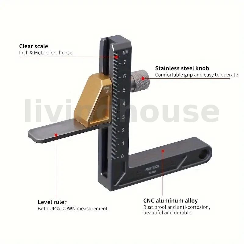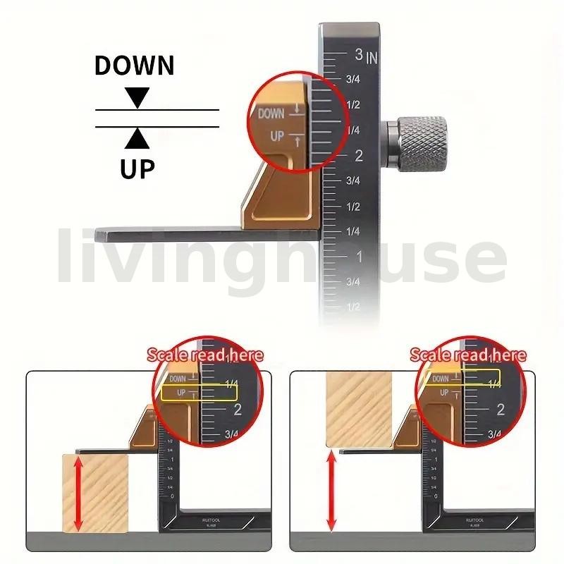 11.11 Aluminum Alloy Height Gauge Adjustable Table Saw Depth Measuring Tool Inch Metric Units Premium Woodworking Adjustable Depth Gauges for Carpentry