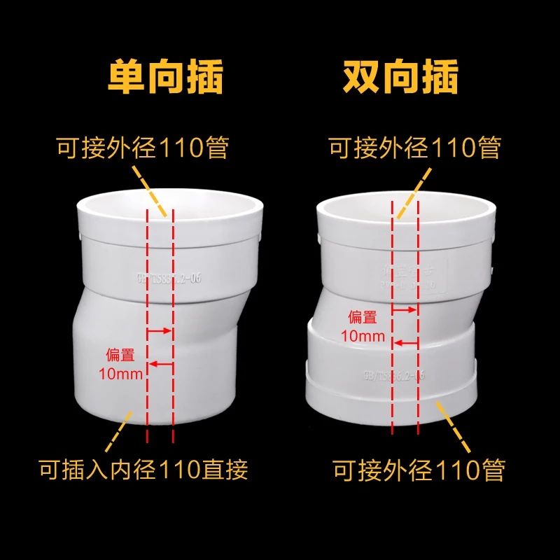 110 PVC pipes embedded eccentric adjusting spacing in the do110PVC Drain Pipe Pre-embedded Directly Adjust the Middle Distance Sewer Joint Offset Direct
