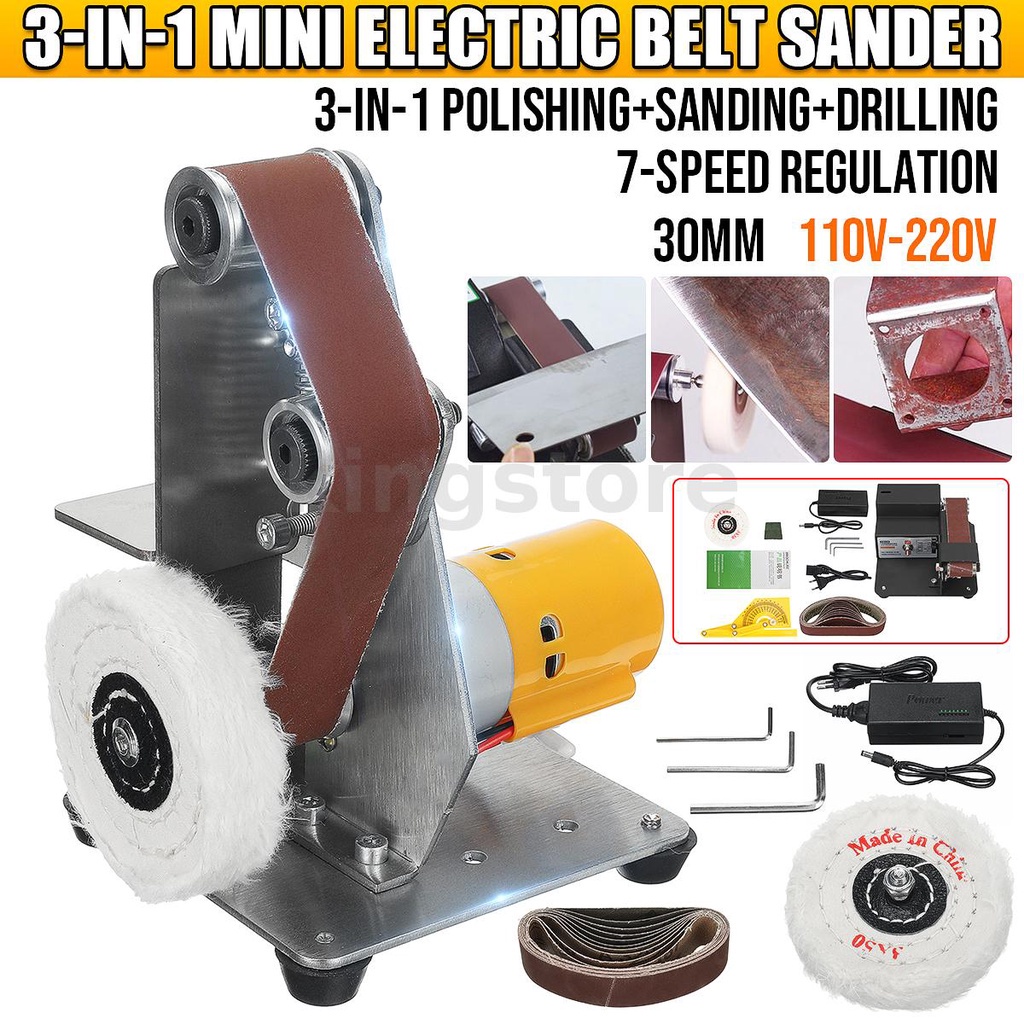 110V-220V 3 Types Mini Electric Belt Sander With Polishing Wheel 3-speed DIY Polishing Grinding Machine 4x11x17.5 cm
