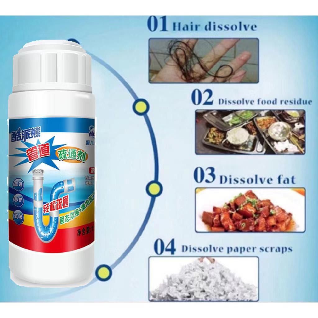 110g Clog Remover Drainpipe Hardware Cleaner Clogged Drainage Remover Powder for Toilet and Kitchen- [1pcs]