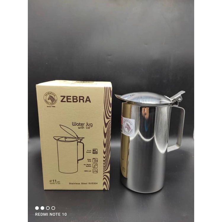 11CM 1900CC ZEBRA S/STEEL WATER JUG W/LID