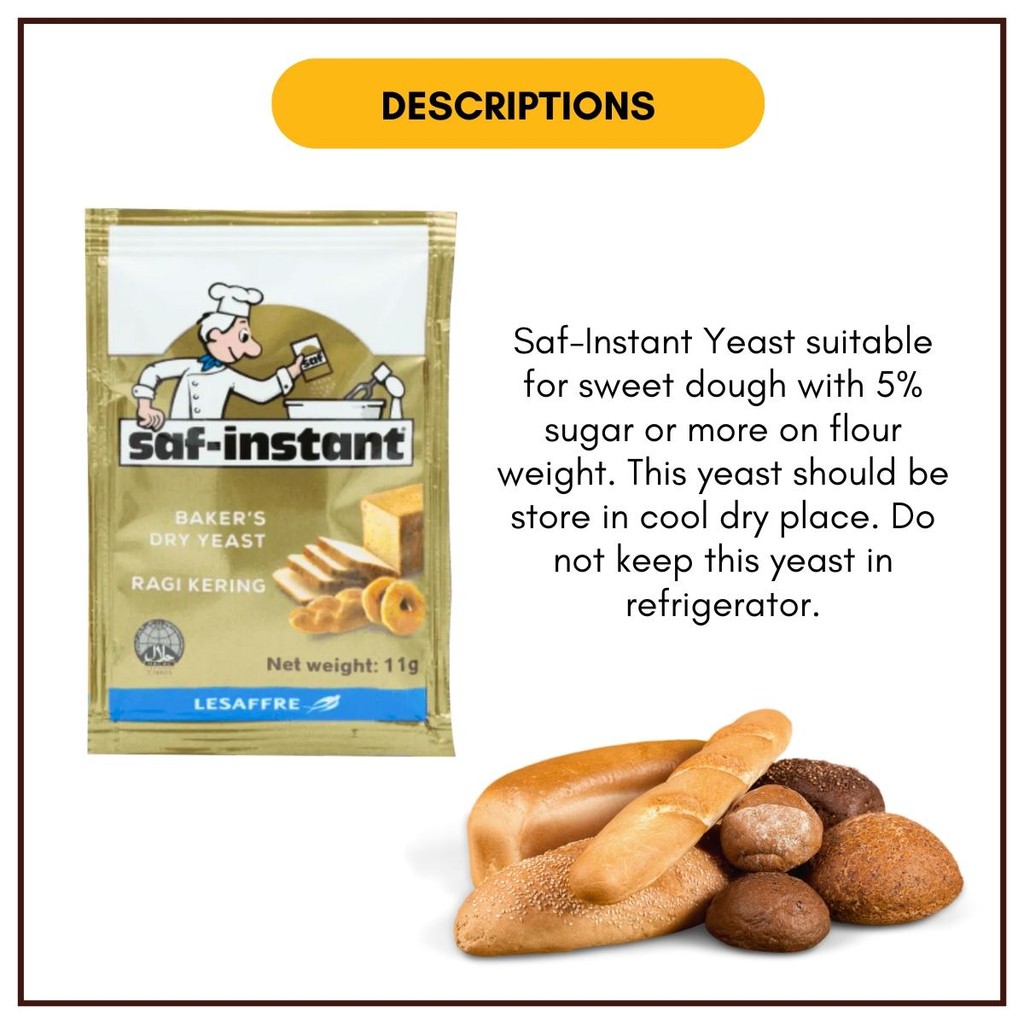 11g Saf Instant Gold Mauripan Dry Yeast Yis Segera Kering Ragi Ibu Roti