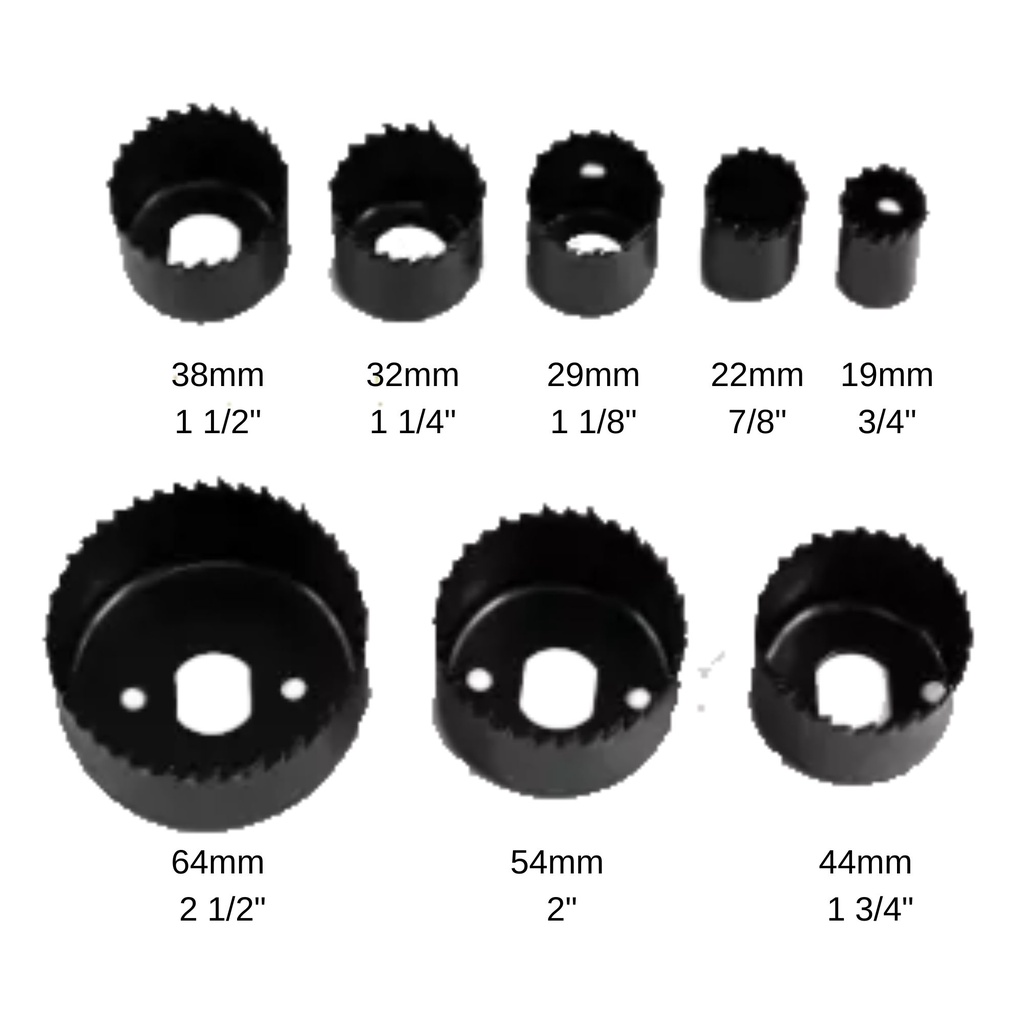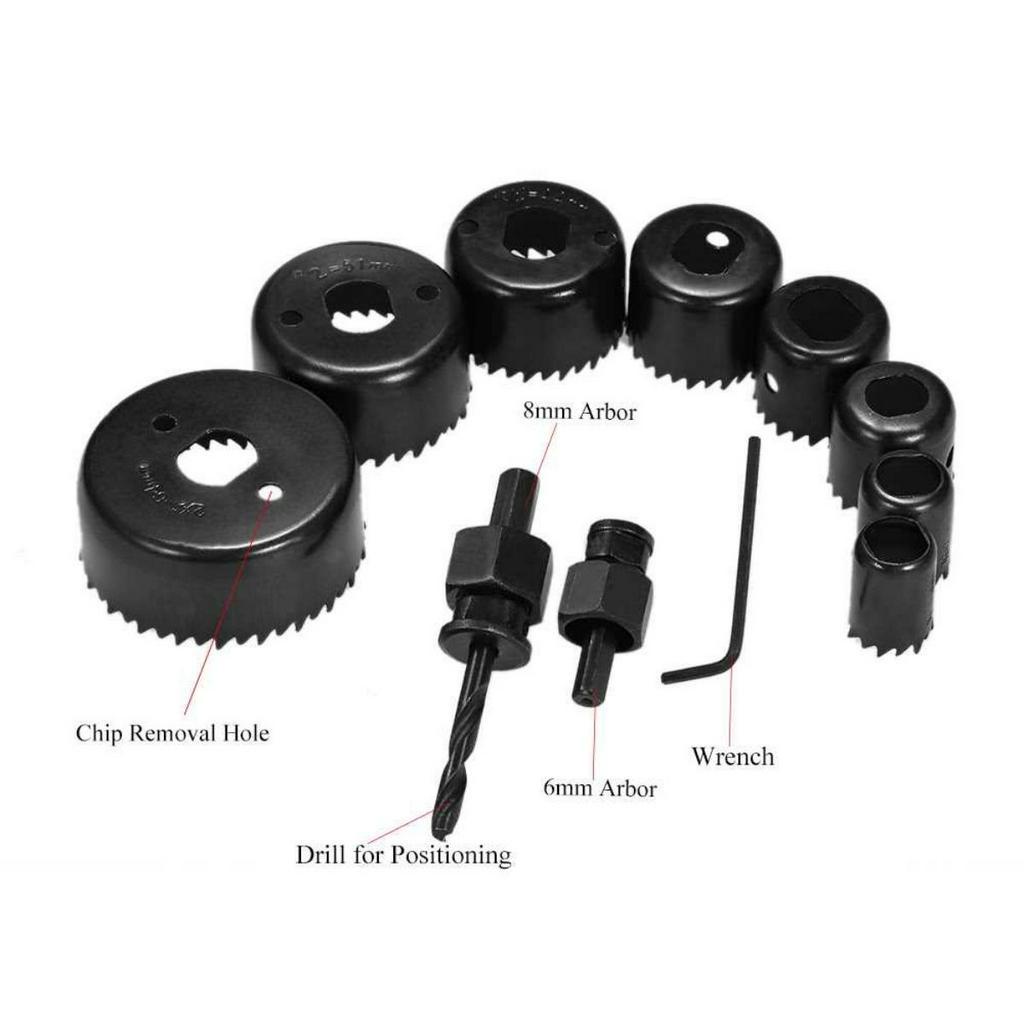 11pcs Hole Saw Set Drill Bit 19mm ~ 64mm Cutter Core Shaft Plastic Wood Alloys & Thin Sheet Metal 6pcs Hole Saw Set