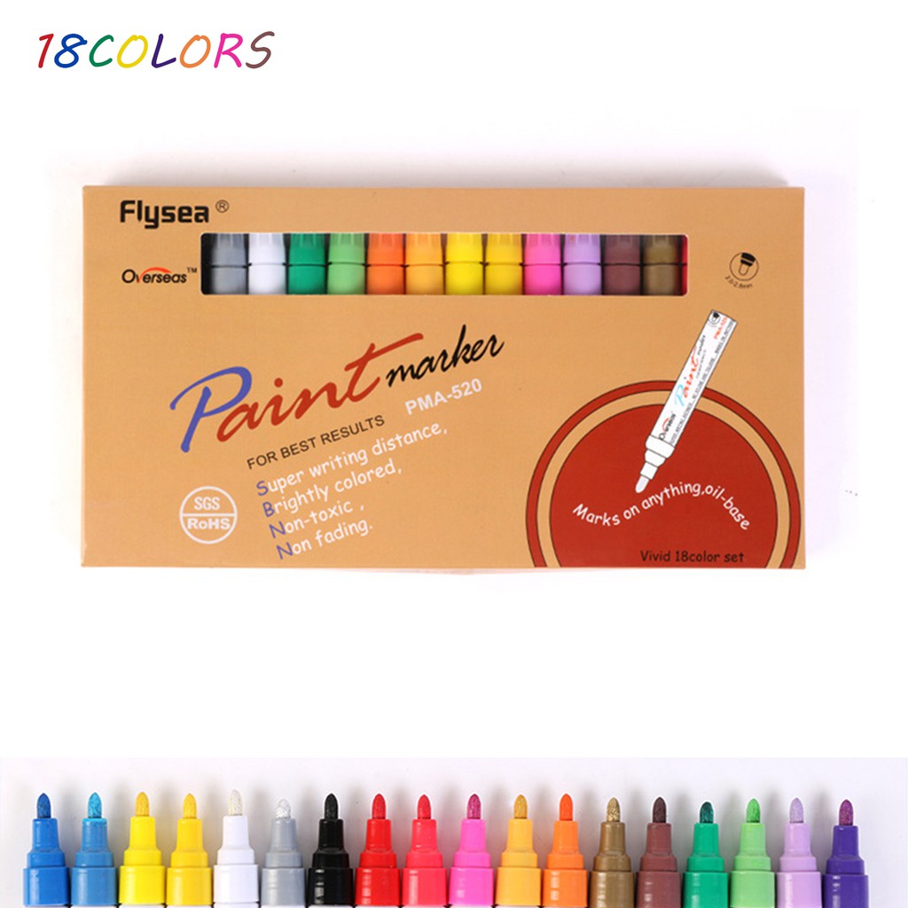12/18 Colors Waterproof Rubber Permanent Paint Marker Pen Car Tyre Tread Tire Painting Marker