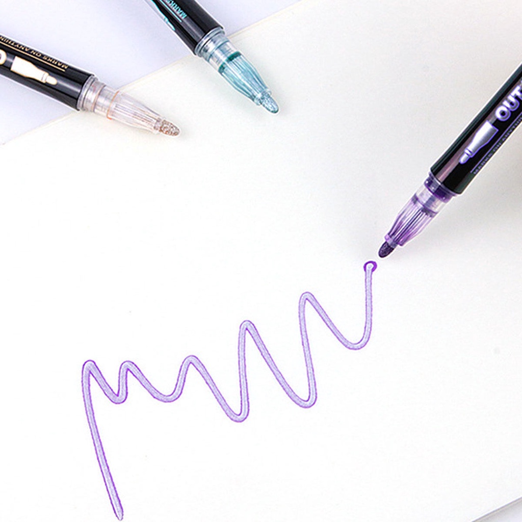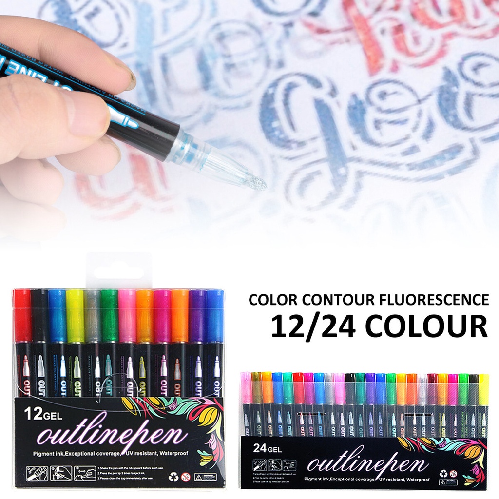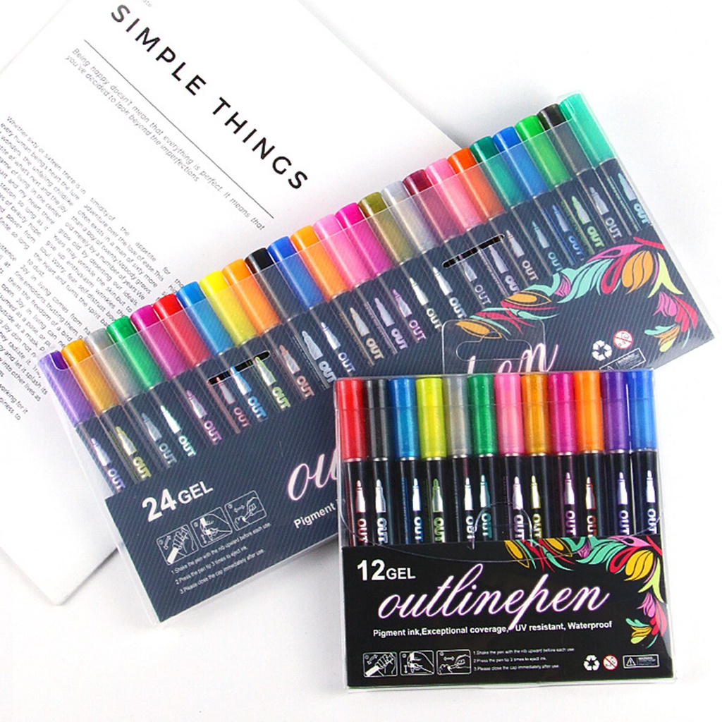 12/24 Colors Double Line Outline Art Pen Marker Pen DIY Graffiti Outline Marker Pen Highlighter for Scrapbook Diary Poster Card