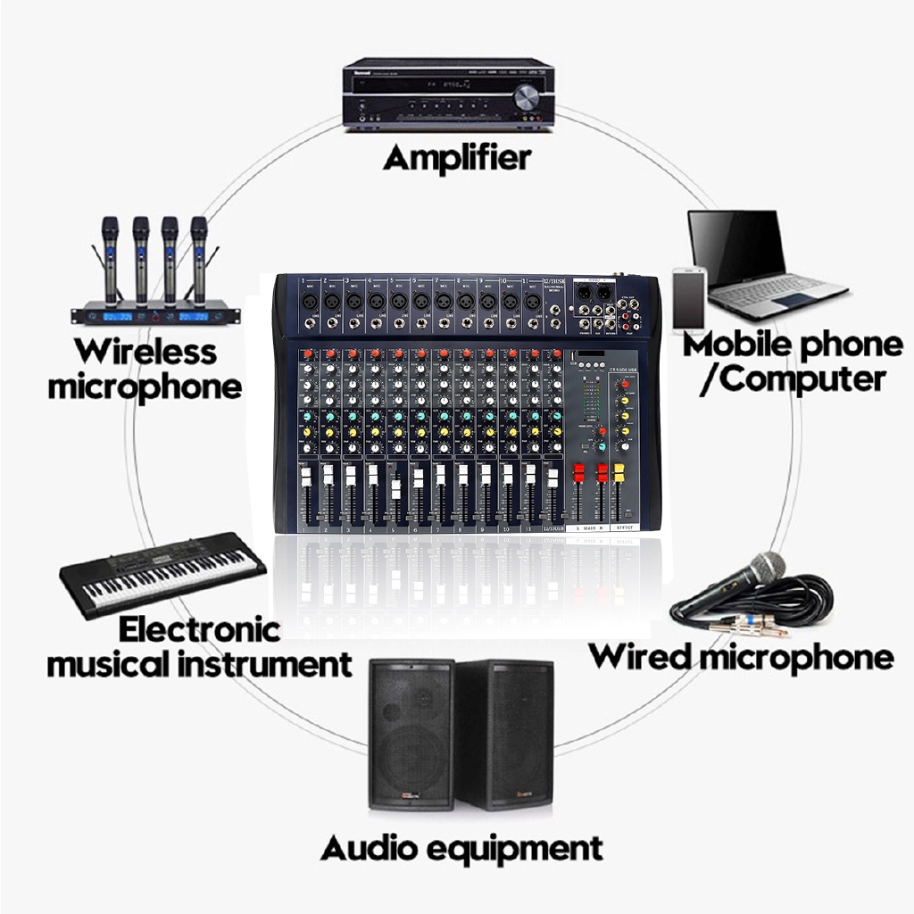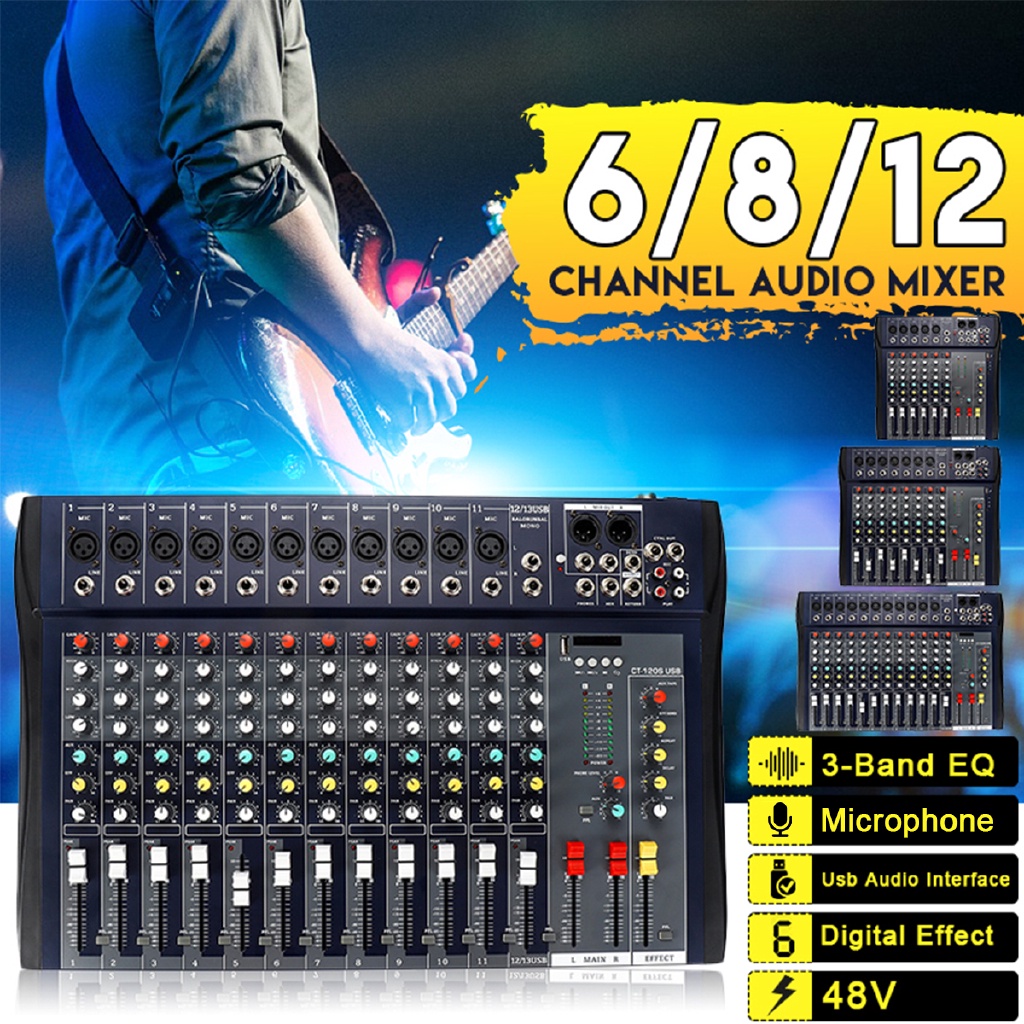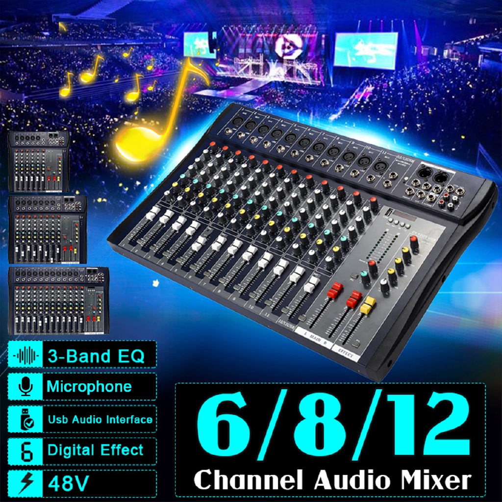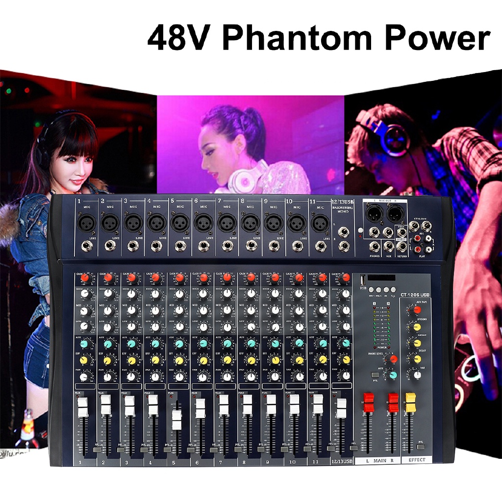 12 Channel Microphone Digital Sound Mixing Amplifier Console Professional Karaoke Audio Mixer Audio USB 48V Powermixer