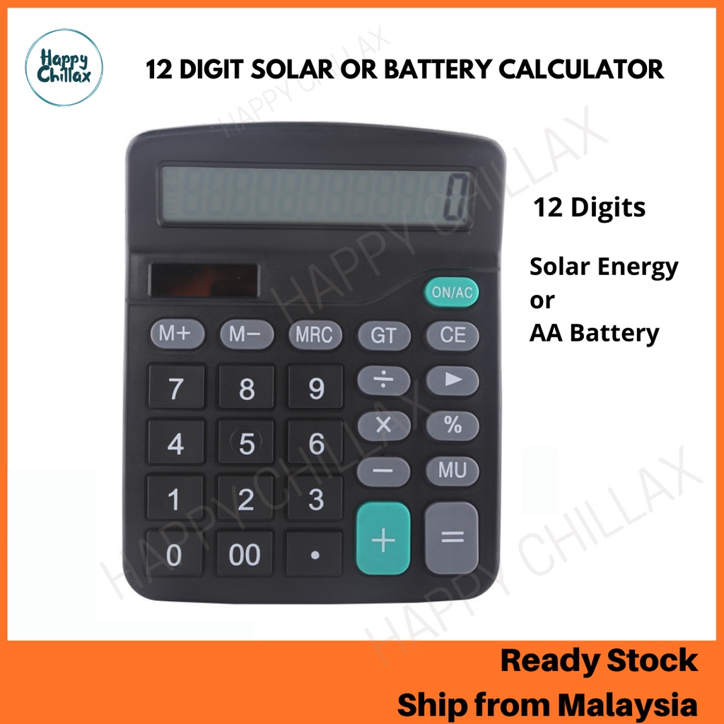 12 Digit Solar Sun Power or Battery Electronic Calculator