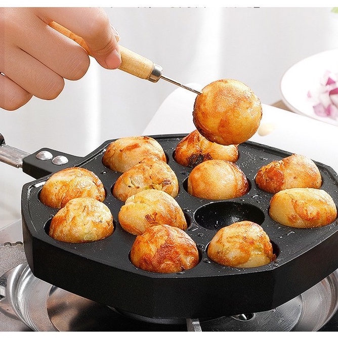 12 Holes Takoyaki Homemade Non Stick Aluminium Grill Pan