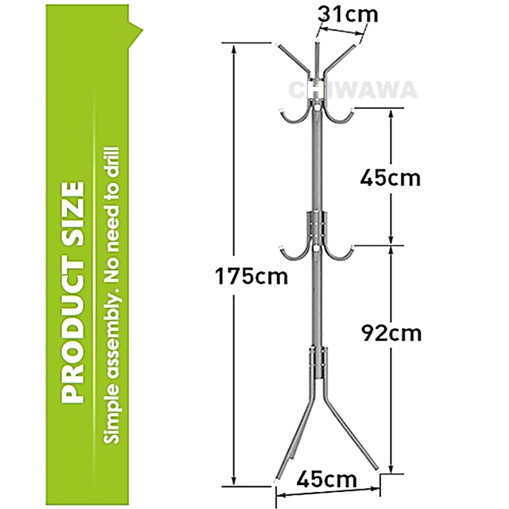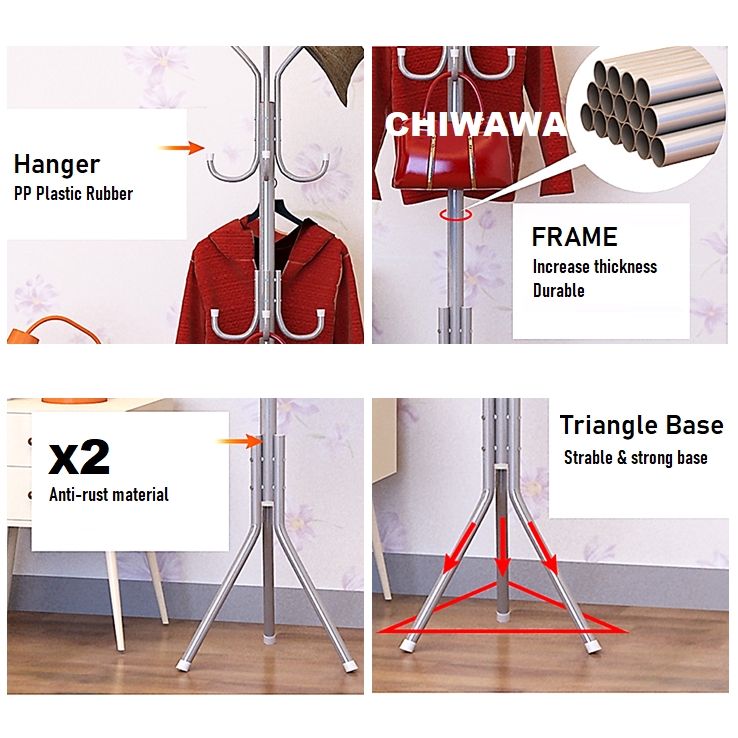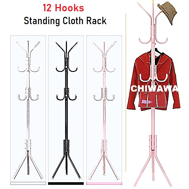 12 Hook DIY Clothes Standing Hanging Rack Cloth Hanger Tree Closet Organizer Drying Shelf Rak Penyidai Baju