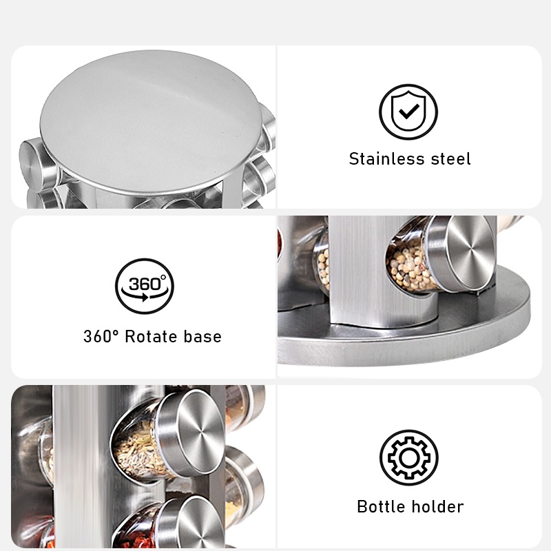 DESSINI ITALY 12 IN 1 Rotating Spiral Spice Tower Rack Glass Bottle Organiser Salt Storage Jar Condiment Canister