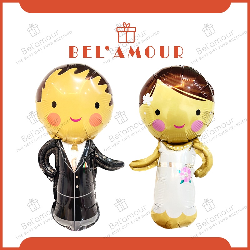12 Inch Mini Cartoon Foil Balloon / Foil Belon - Wedding Bridegroom & Bride Balloon / Belon [Ready Stock]