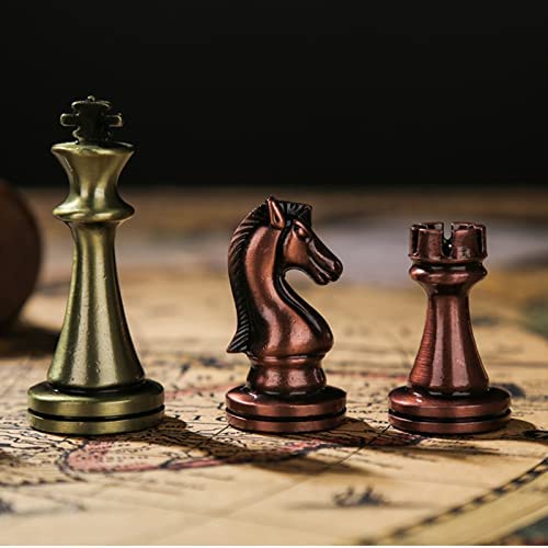 12 Inches Chess Set with Folding Wooden Chess Board and Classic Handmade Standard Pieces Metal Chess Set for Kids Adult