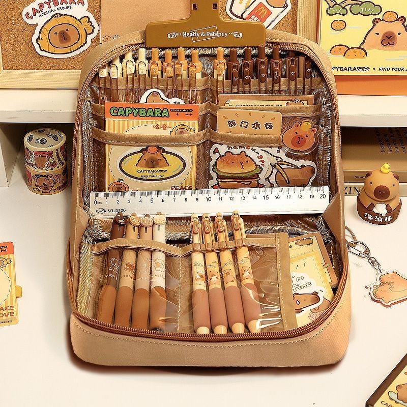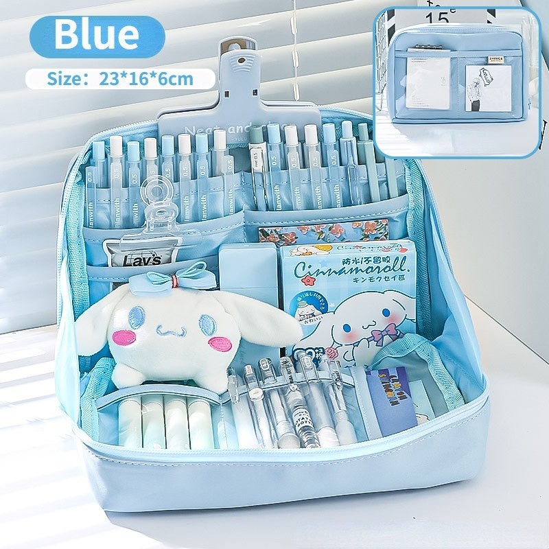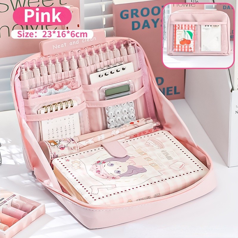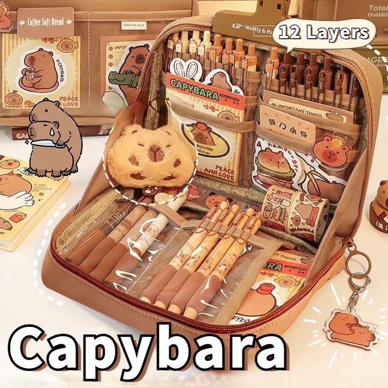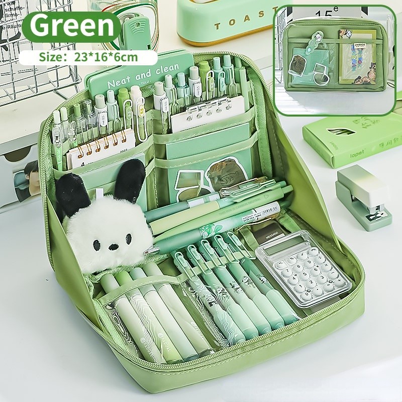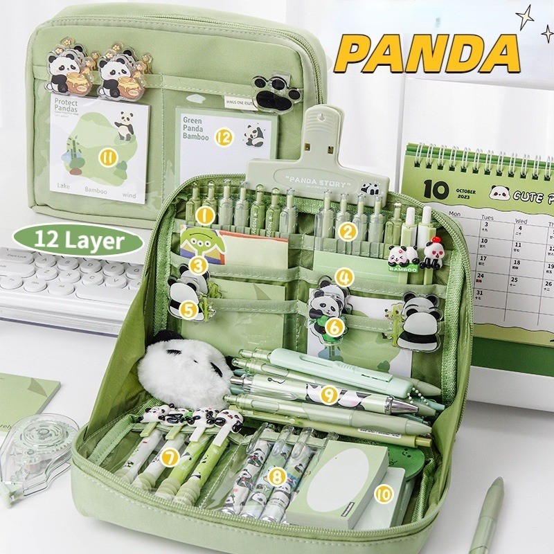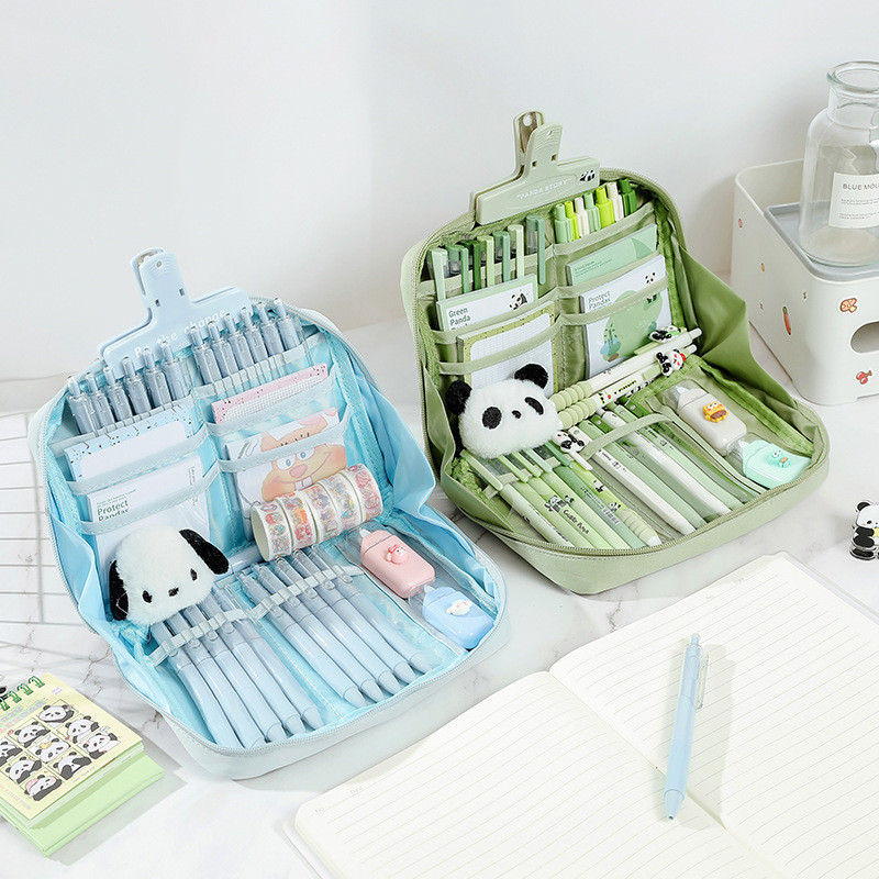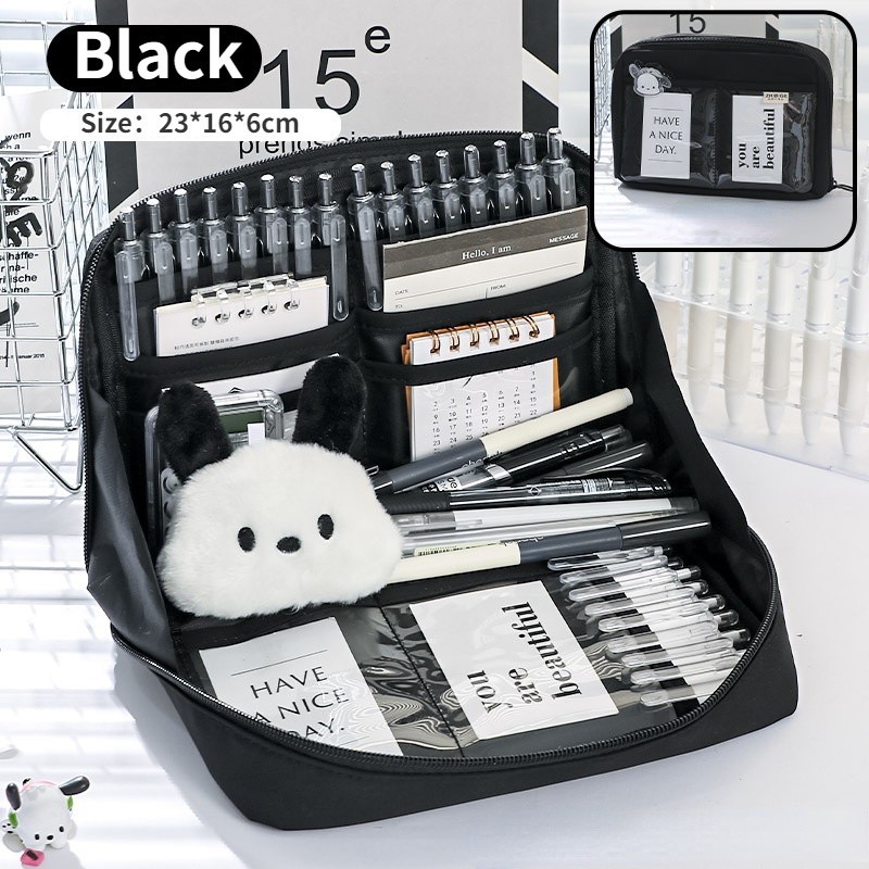 12 Layers Large Capacity Korean Pencil Case Canvas Lattice Large Capacity Pencil Bag for Students Stationery Box Kawaii School Supplies