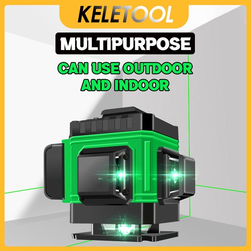 12-Line 3D Green Light Laser Level Horizontal and Vertical Crossing Lines Super Powerful Green Beam Auto Measuring