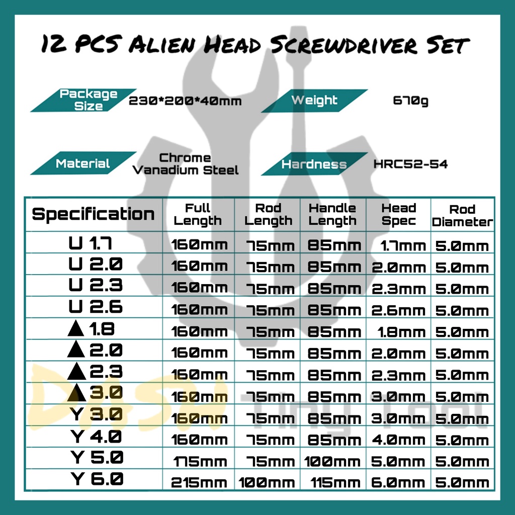 12 PCS Alien Special Shape Magnetic Screwdriver / U shape / Y shape / Triangle head